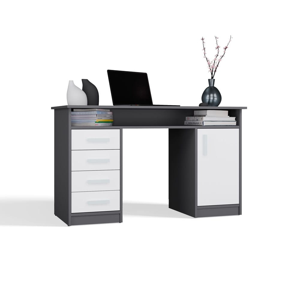 Biurko 125 cm, z 4 szufladami, antracyt/białe matowe do biura Ada