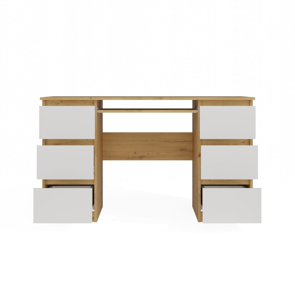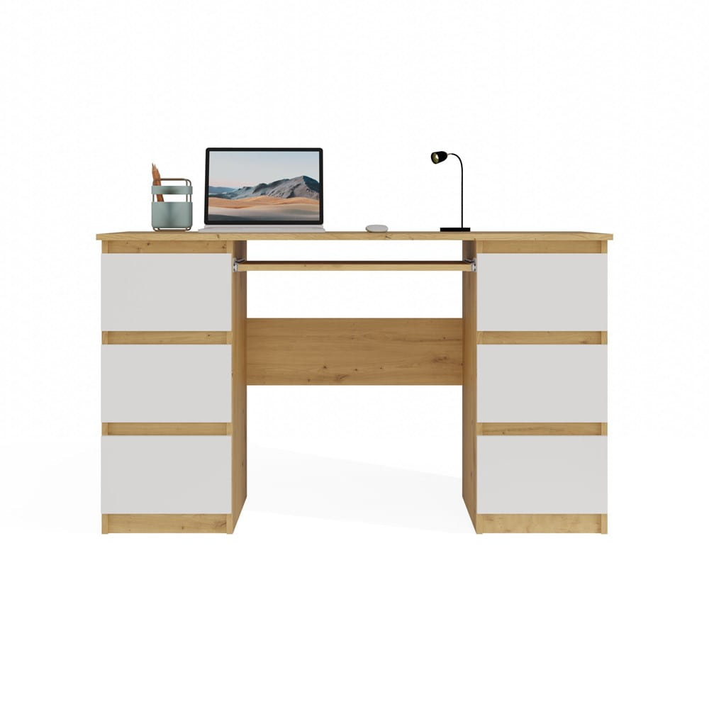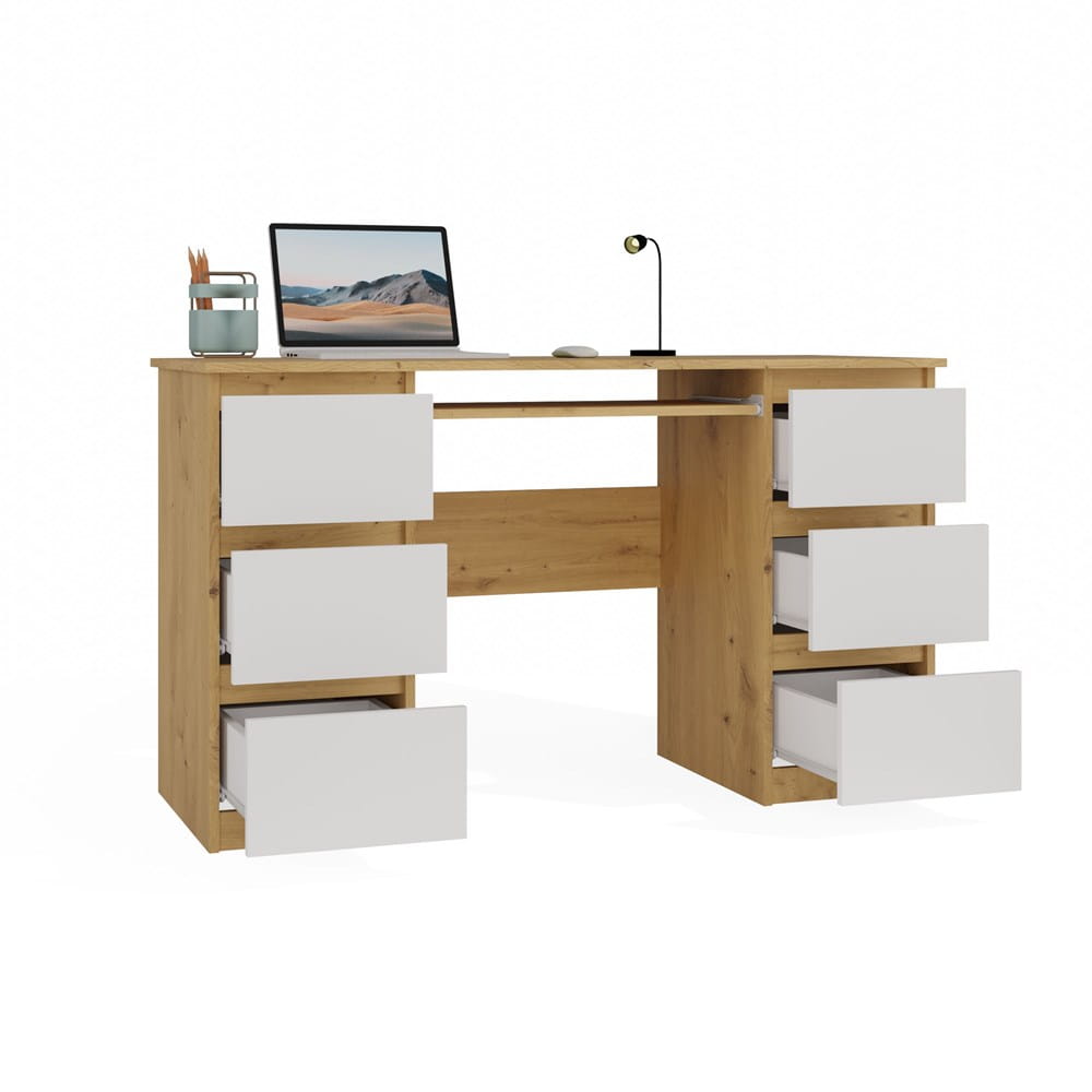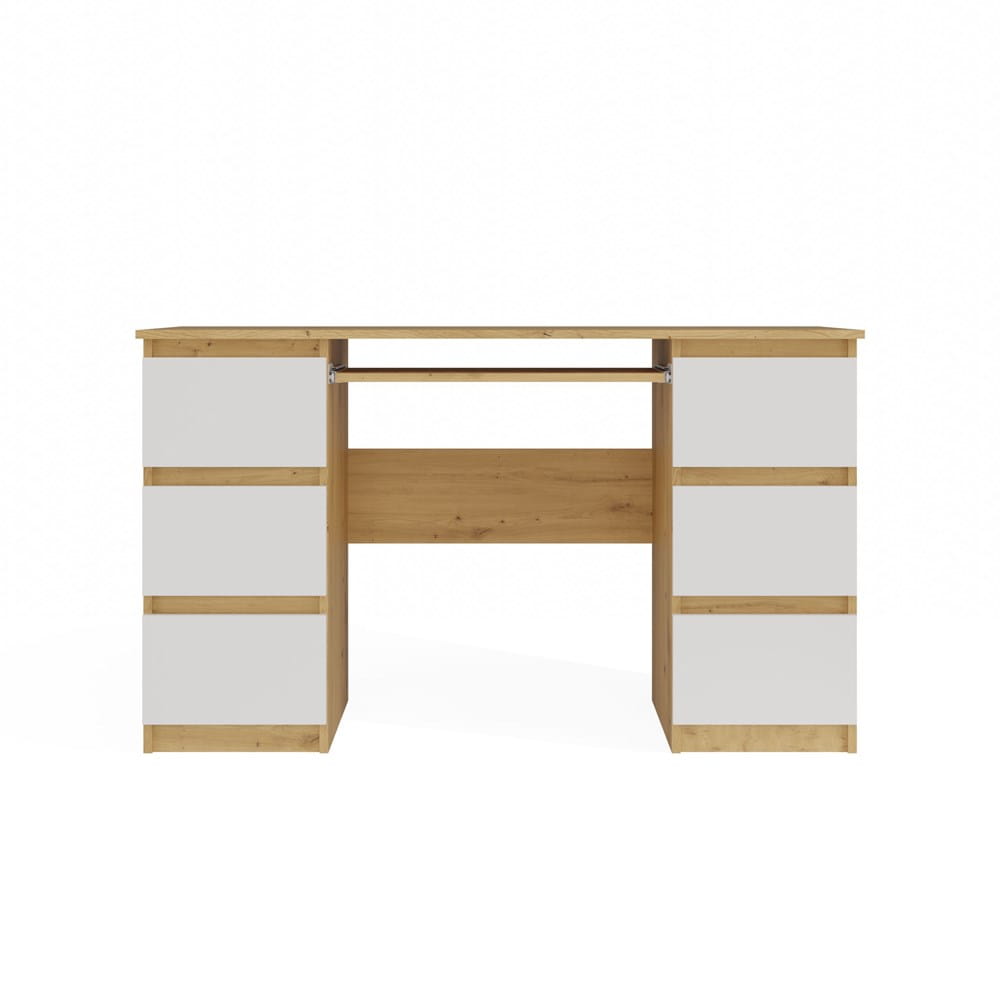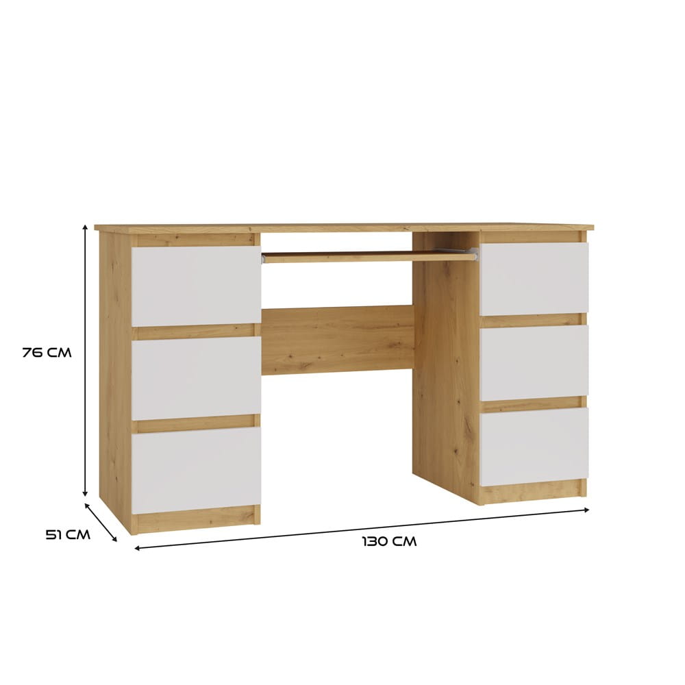 Biurko Kuba z 6 szufladami, dąb artisan i biały front, z półką na klawiaturę