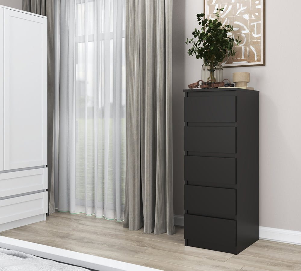 Komoda 40 cm, z 5 szufladami, czarna matowa Malwa W5
