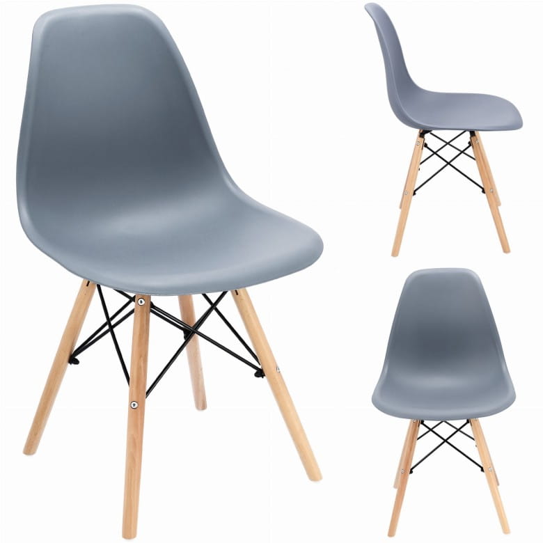 Krzesło szare plastikowe, nogi z drewna bukowego Eva