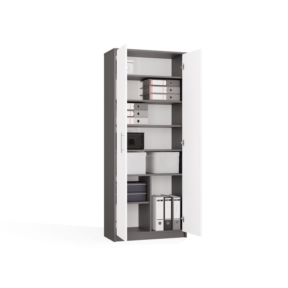 Regał do biura zamykany na segregatory, antracyt/biały matowy Oliv 2D