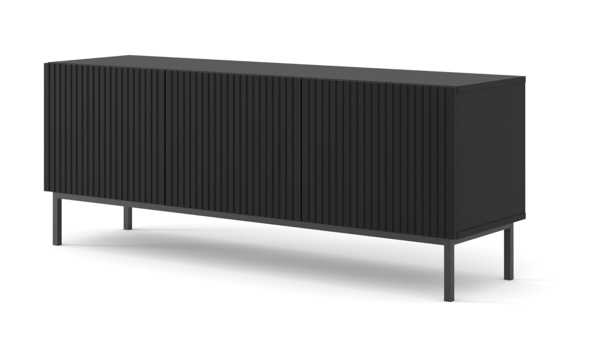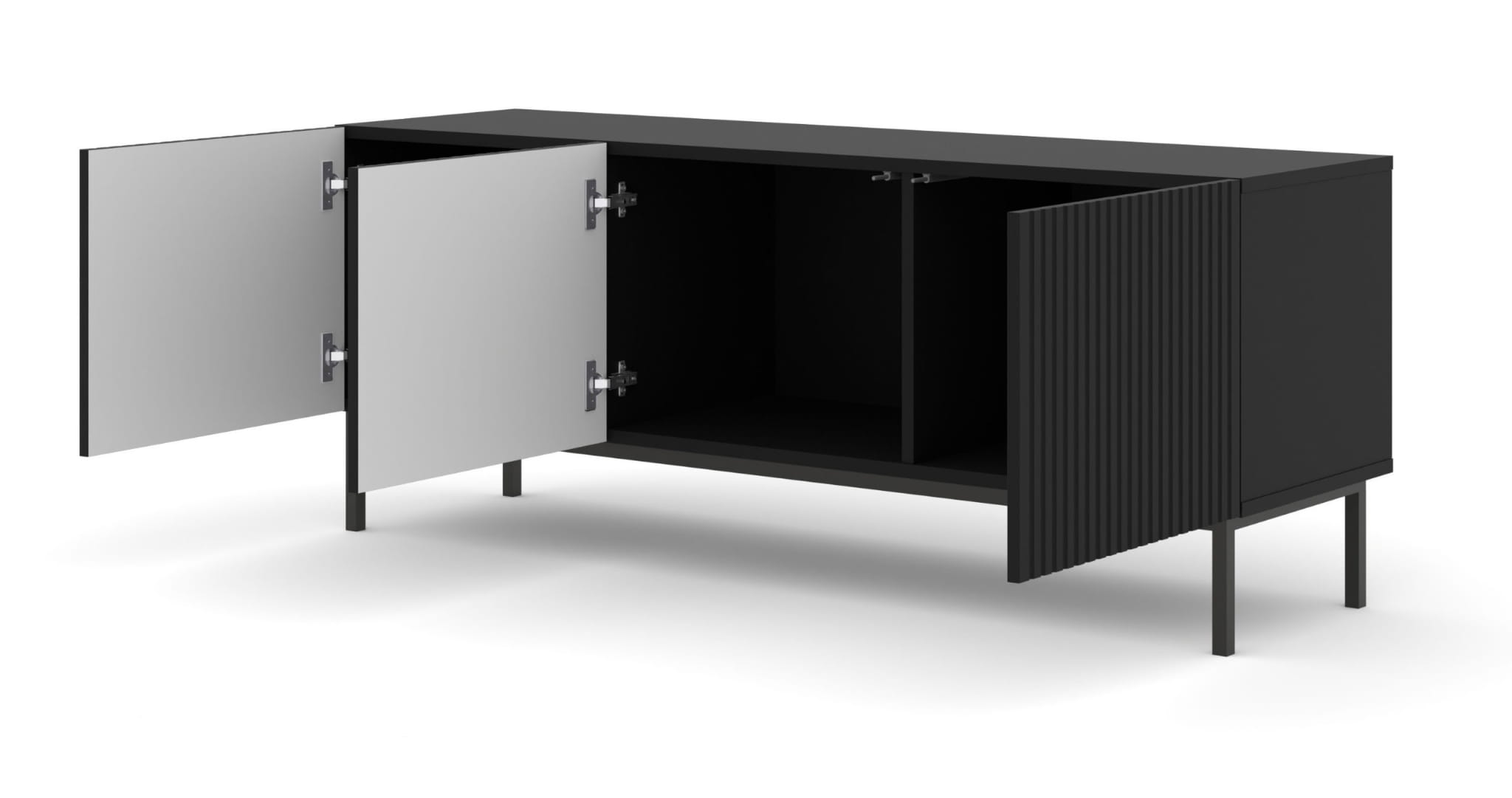 Szafka RTV 150 cm, czarna matowa na czarnych nogach Ravenna B