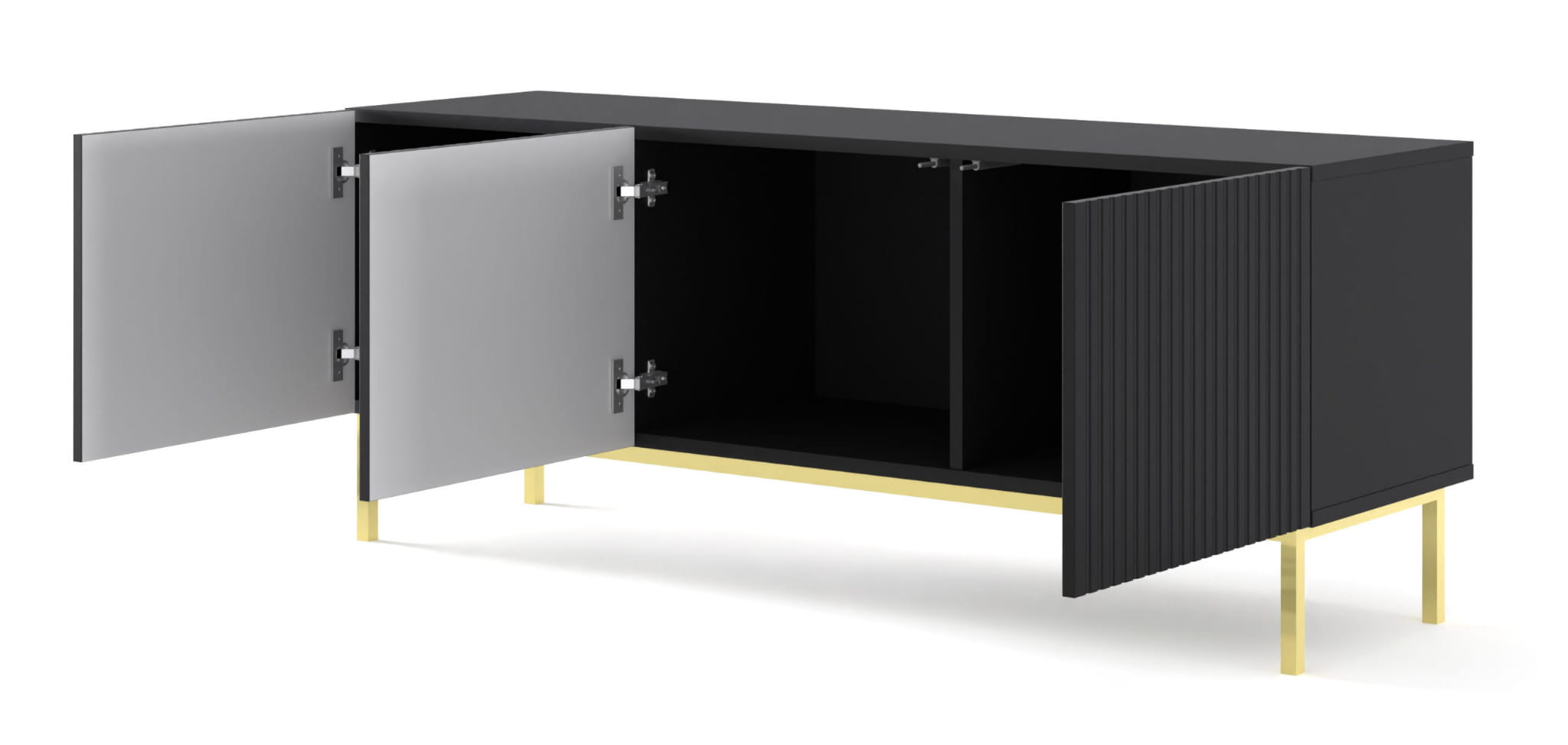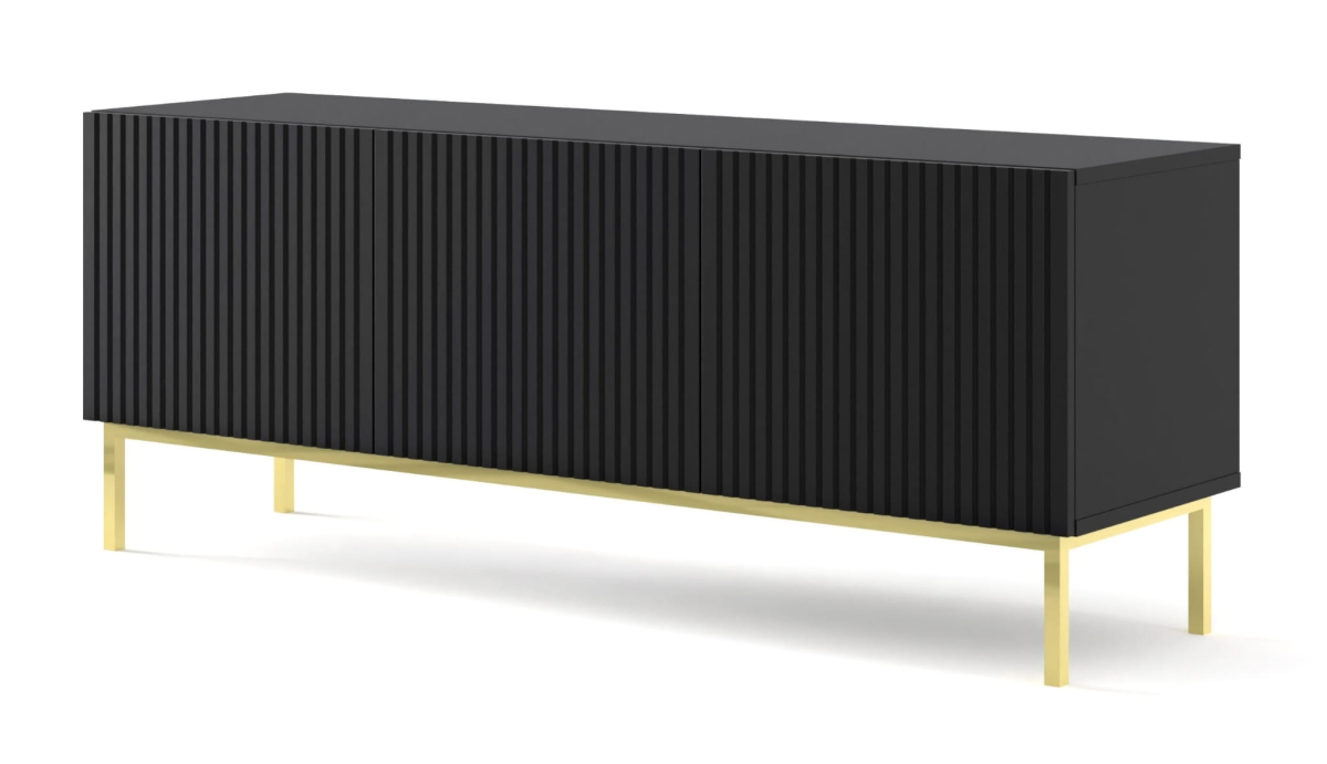 Szafka RTV 150 cm, czarna matowa na złotych nogach Ravenna B
