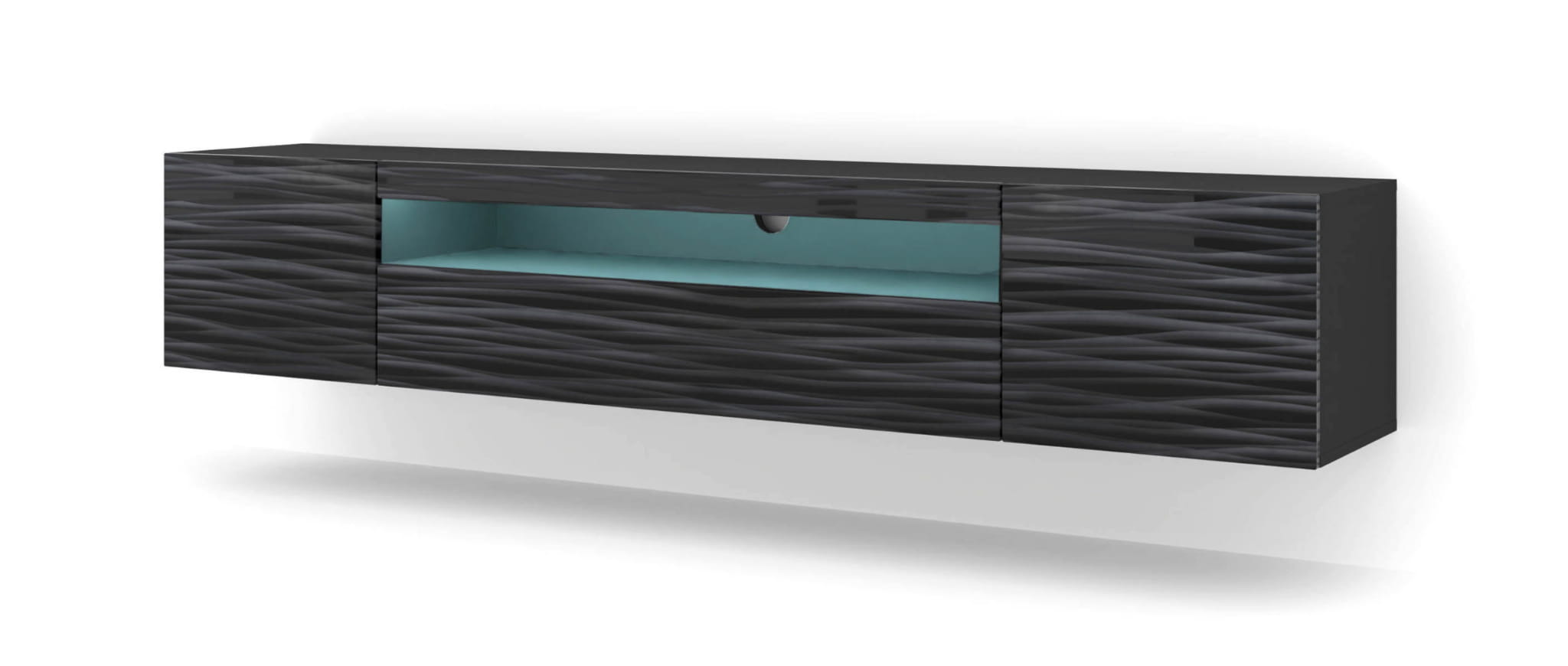 Szafka uniwersalna 200 cm, czarna do salonu z oświetleniem LED, Sahara