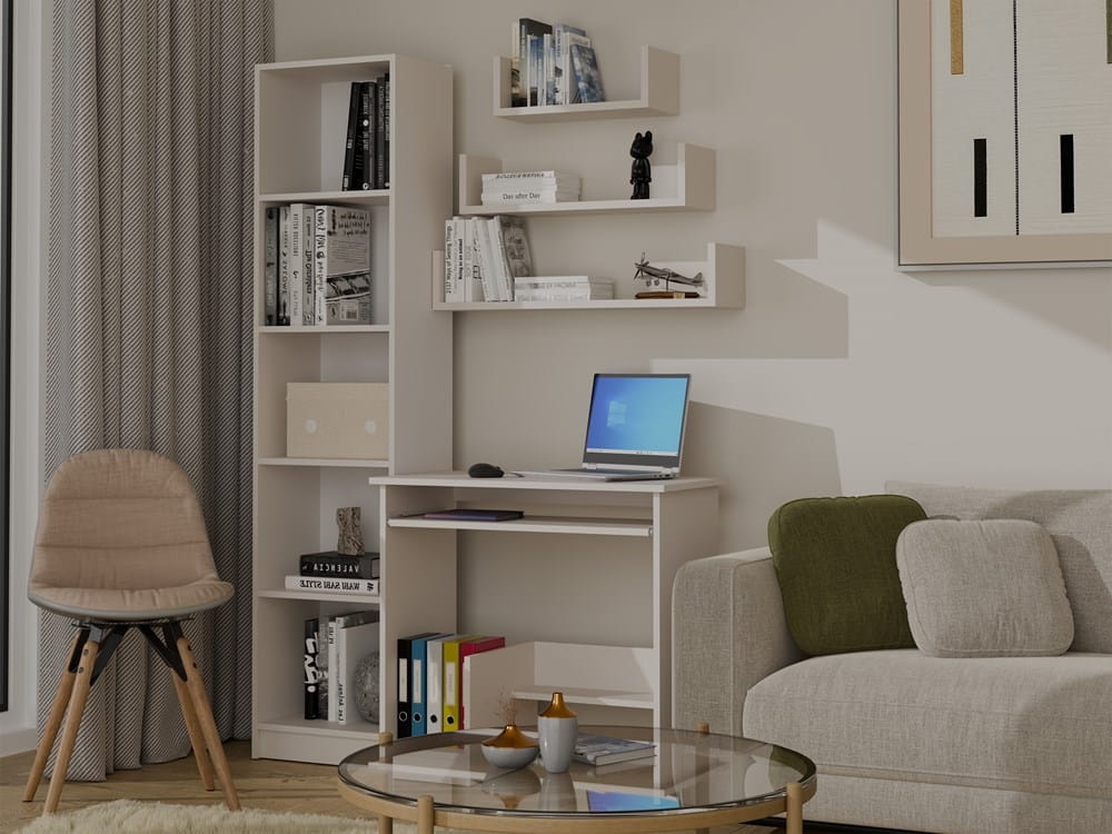 Zestaw sprawdzi się w salonie, biurze, pokoju młodzieżowym, przedpokoju lub sypialni. Półki idealnie nadają się do ekspozycji książek, dekoracji, zdjęć czy roślin, a umieszczone nad komodą tworzą spójną i estetyczną aranżację.