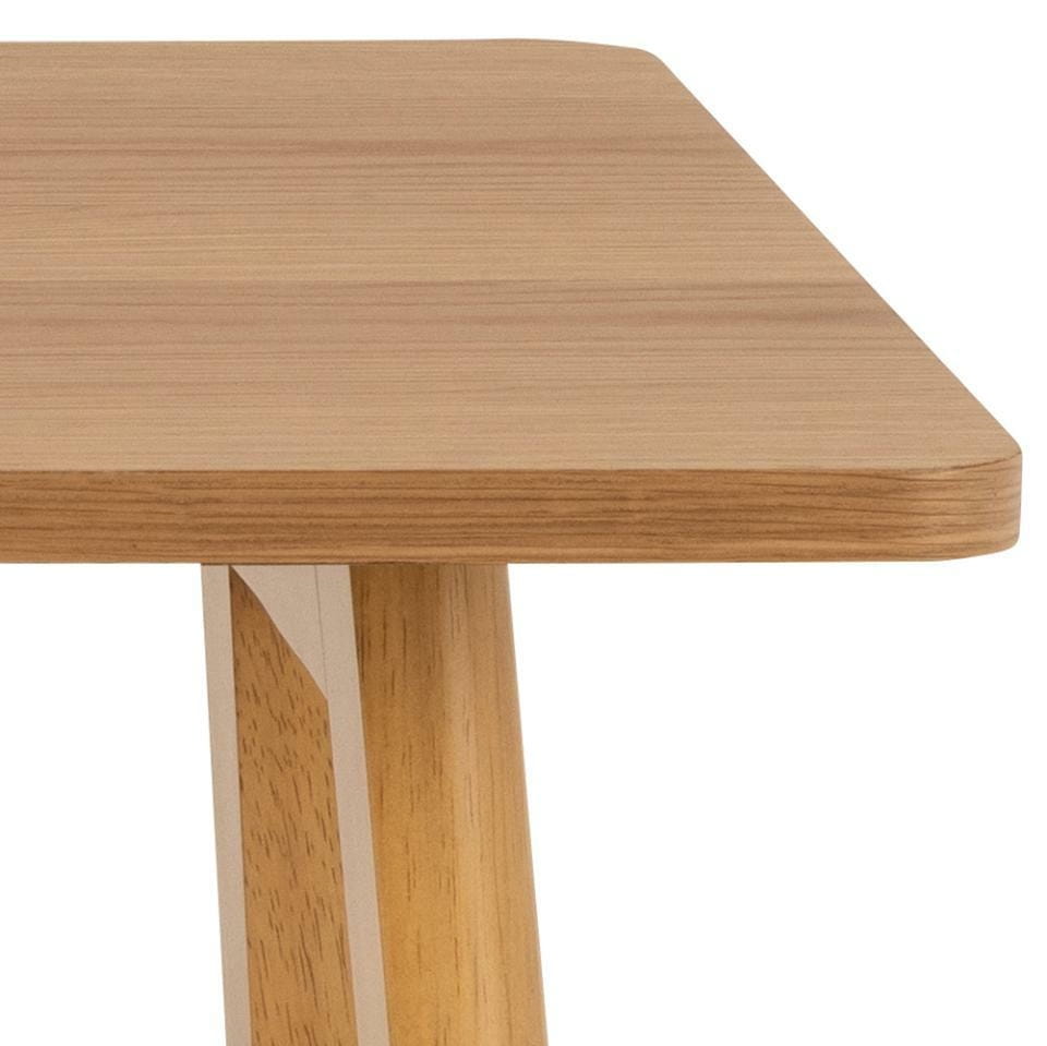 Biurko posiada solidną podstawę z drewna kauczukowego barwionego na kolor dębu.