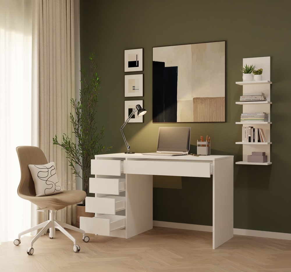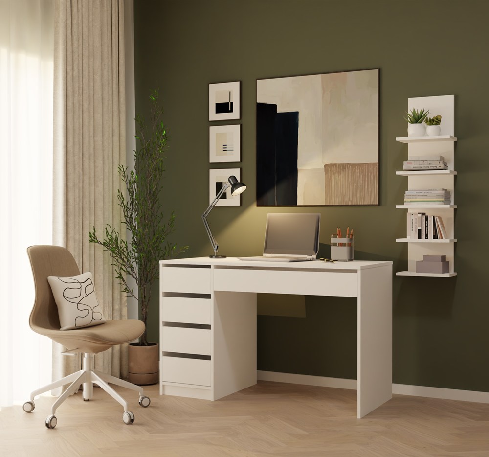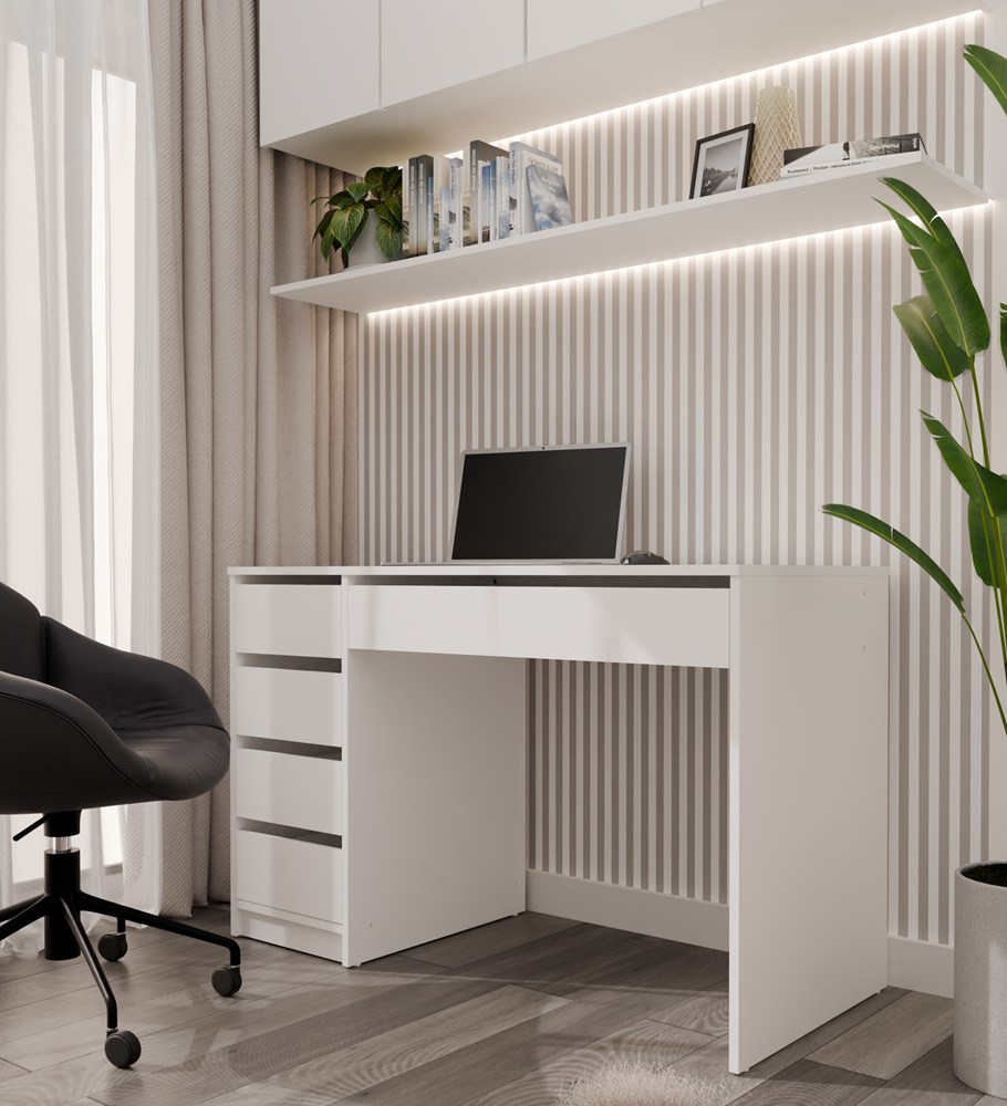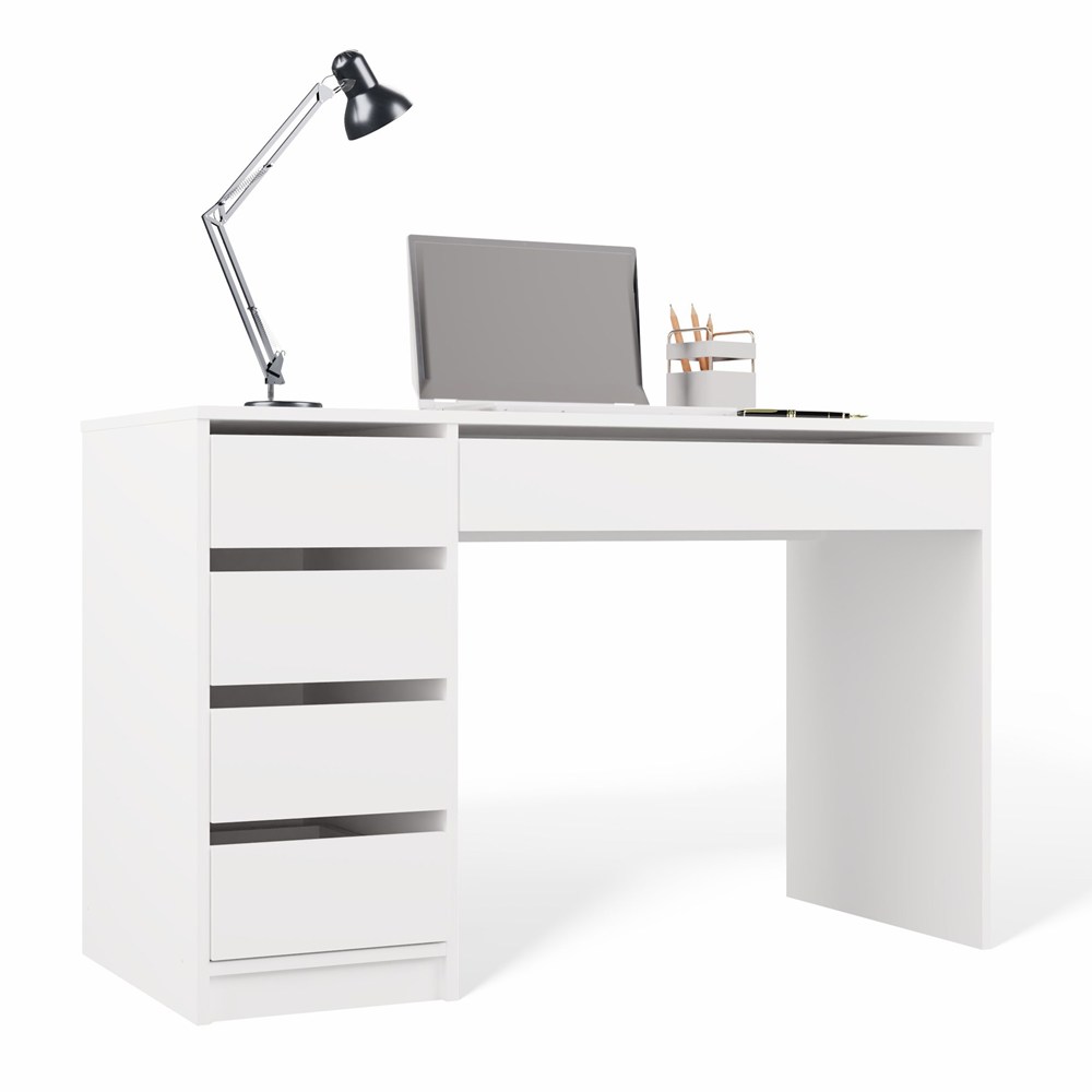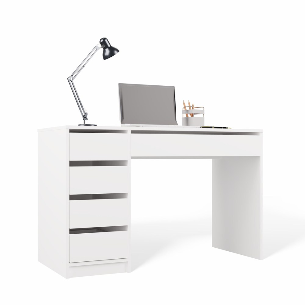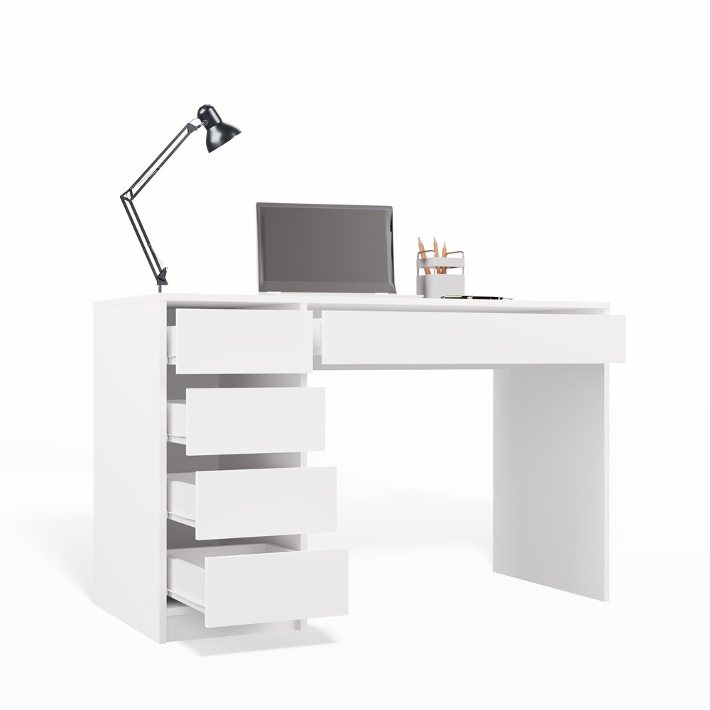 Biurko białe 120 cm, białe matowe z 5 szufladami Arto