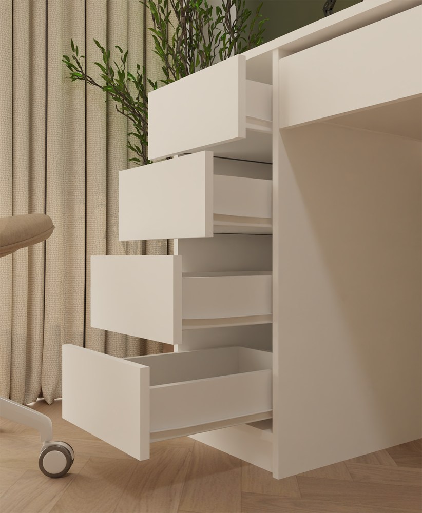Dzięki 5 pojemnym szufladom z łatwością uporządkujesz dokumenty, akcesoria biurowe i wszystkie drobiazgi potrzebne podczas pracy lub nauki.