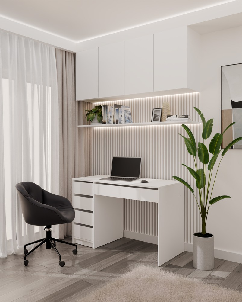 To praktyczne biurko do home office, biura oraz pokoju młodzieżowego, stworzone z myślą o estetyce i porządku.