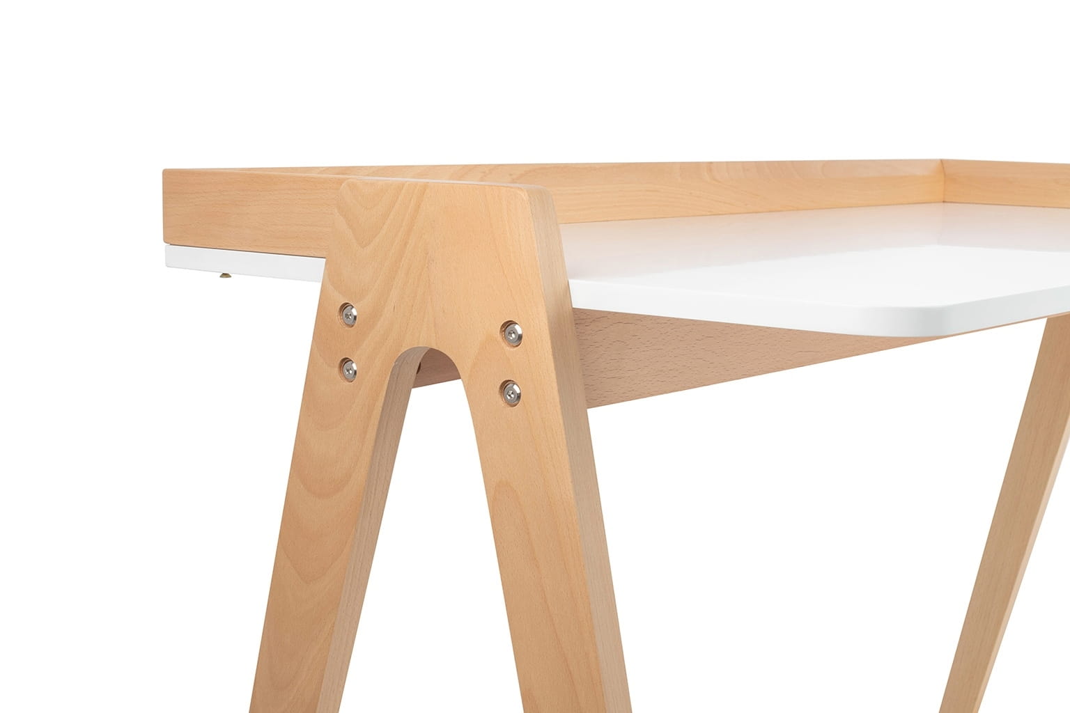 Elegancki design: Nogi biurka wykonane z drewna bukowego dodają mu subtelnego uroku i klasy, nadając pomieszczeniu dyskretny, lecz piękny akcent.