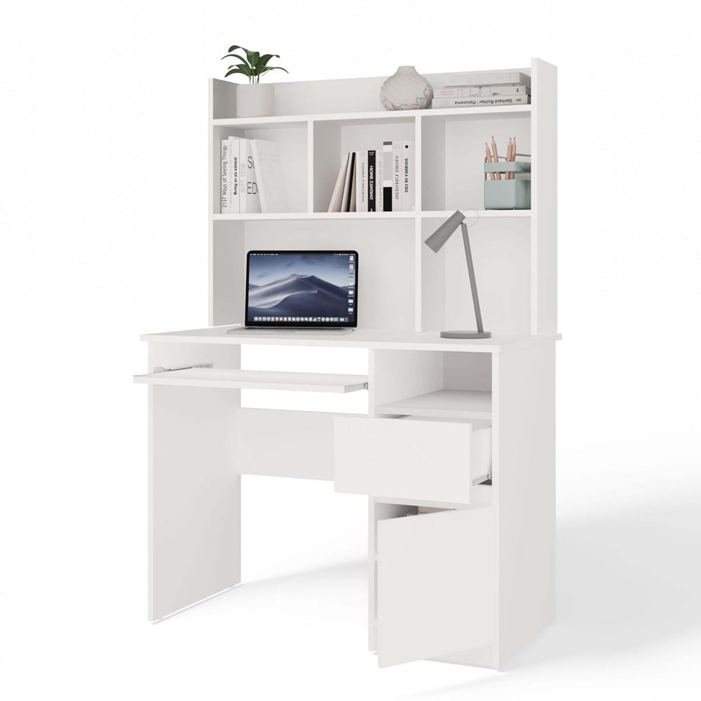 Biurko białe matowe, z nadstawką prawe do pokoju, Porto
