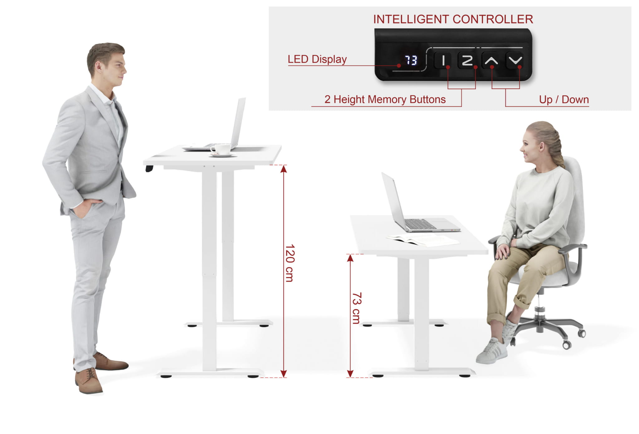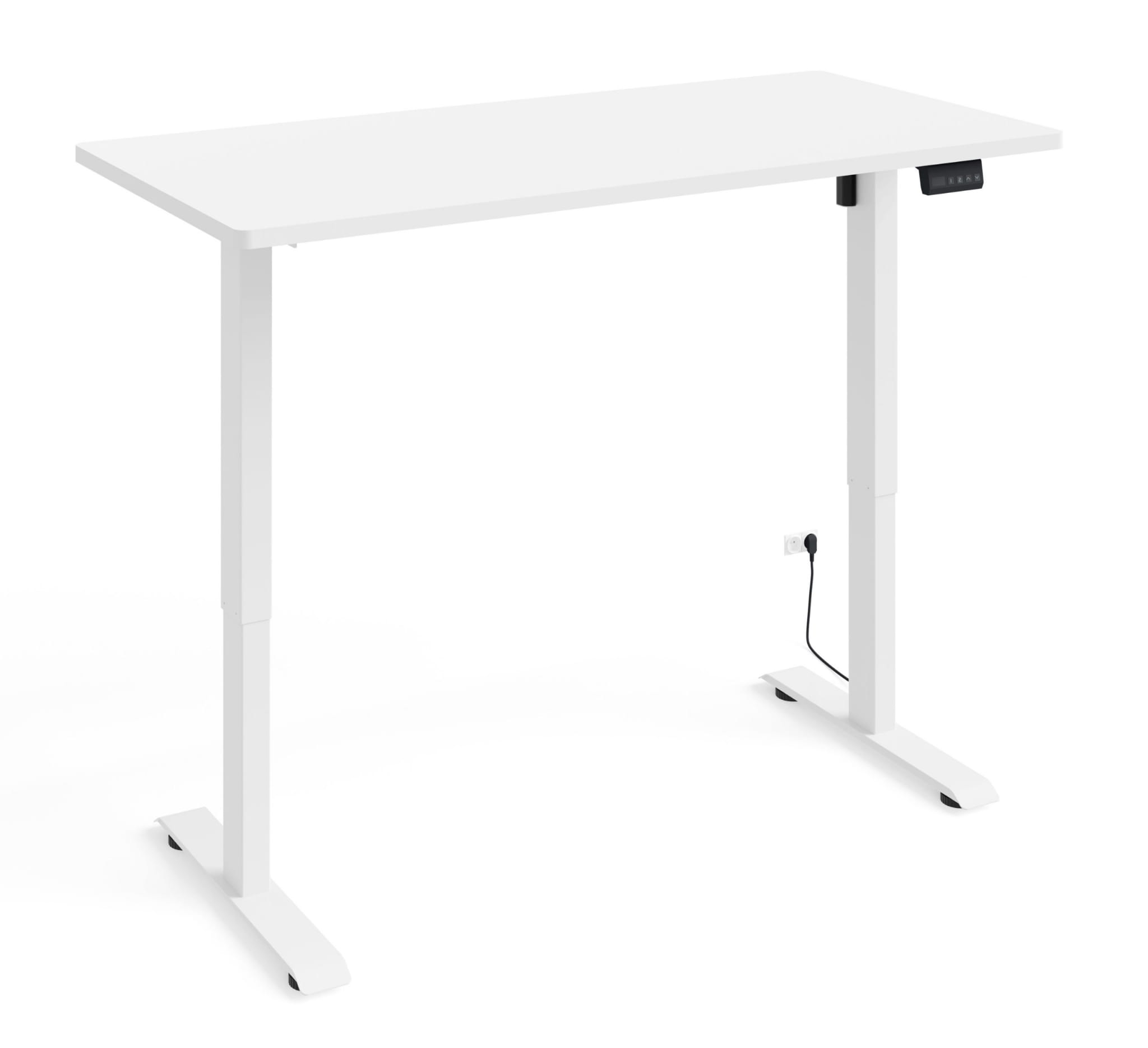 Biurko białe matowe 120x65 cm, z elektryczne z regulacją, biały stelaż BIMotion