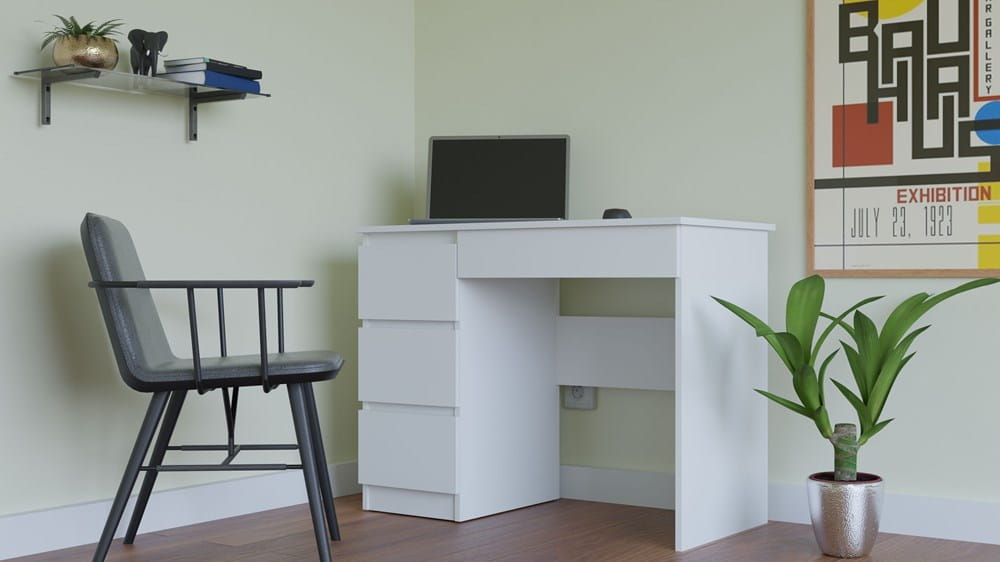Biurko na laptop, białe matowe, lewe Mijas to funkcjonalny i estetyczny wybór, który sprawdzi się w różnych wnętrzach. Wyróżnia się solidnym wykonaniem i ponadczasowym charakterem. Będzie idealnym dodatkiem do Twojej przestrzeni.