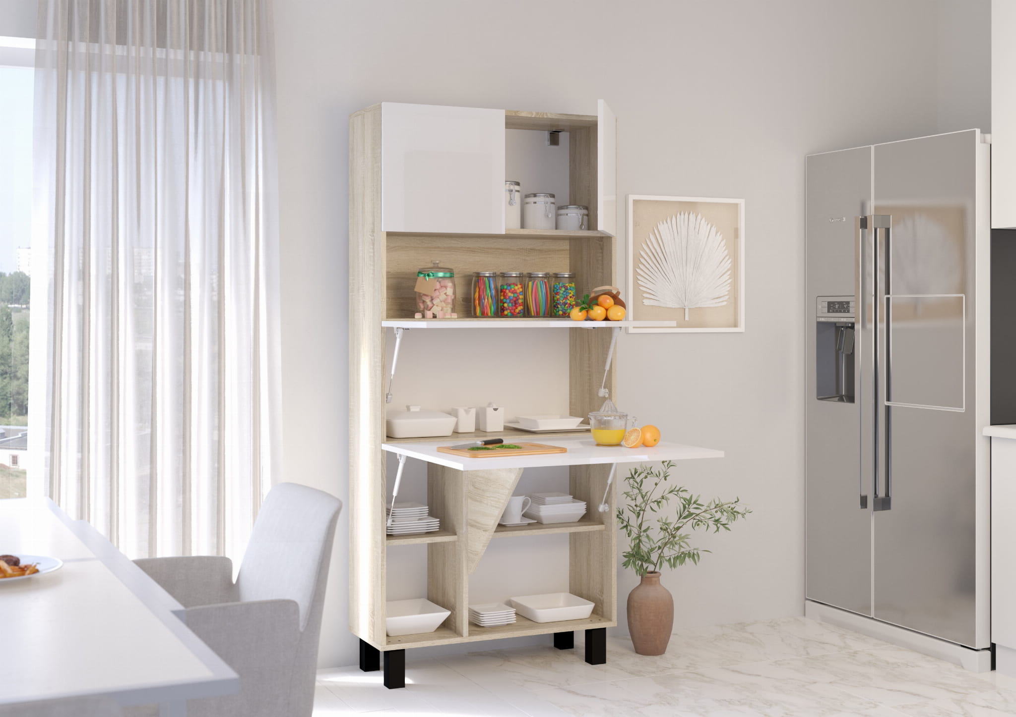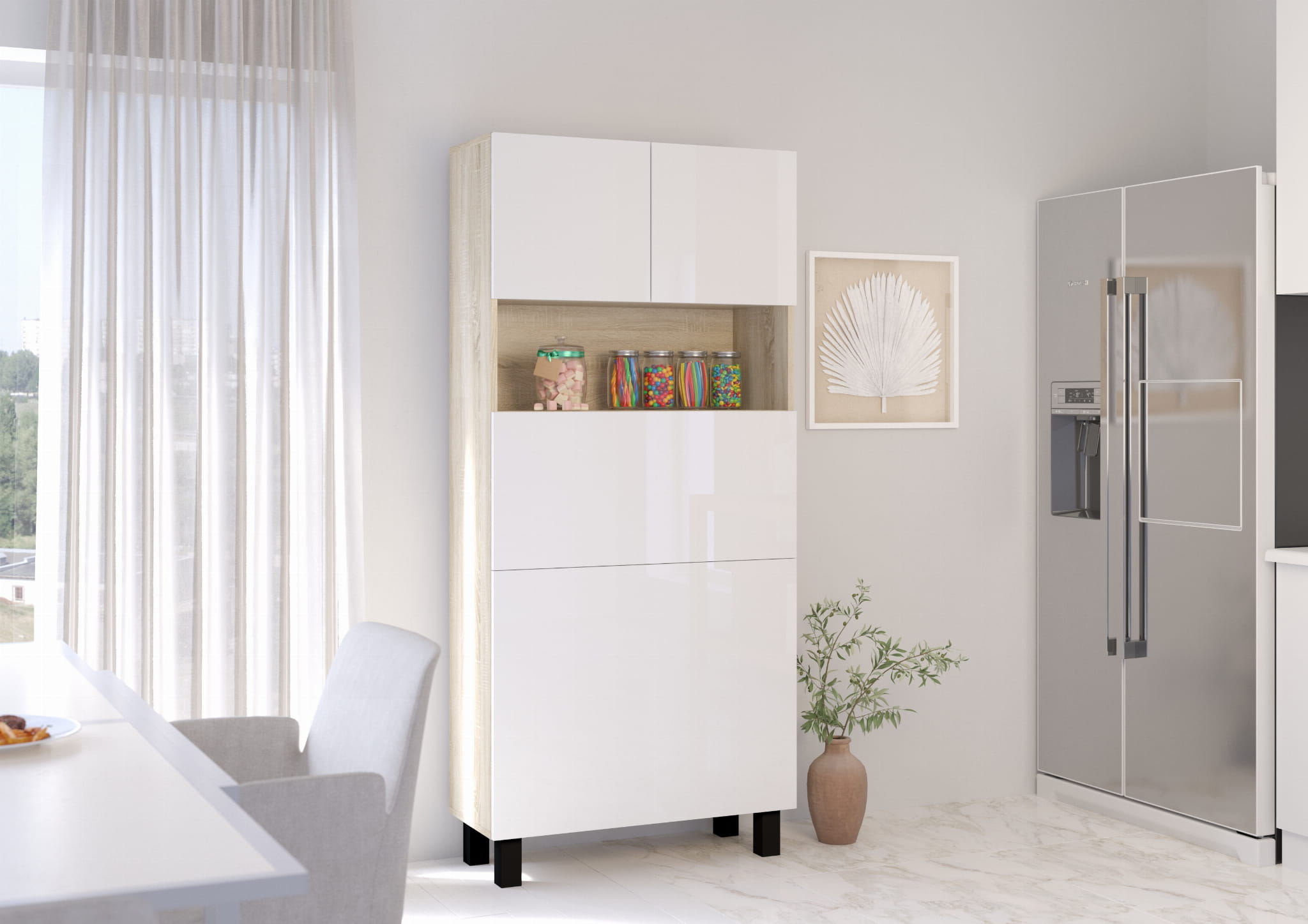 - 1 półka otwarta – szybki dostęp do najpotrzebniejszych przedmiotów