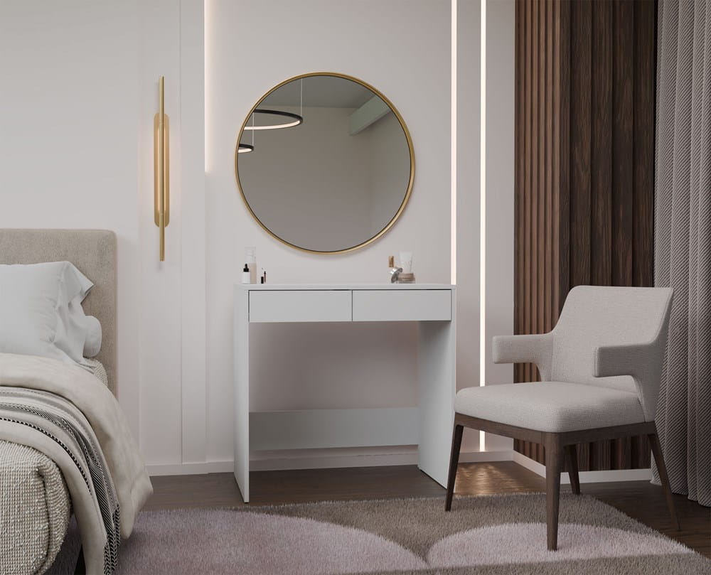 Biurko z dwoma szufladami 81x50 cm, białe matowe Marina 2S