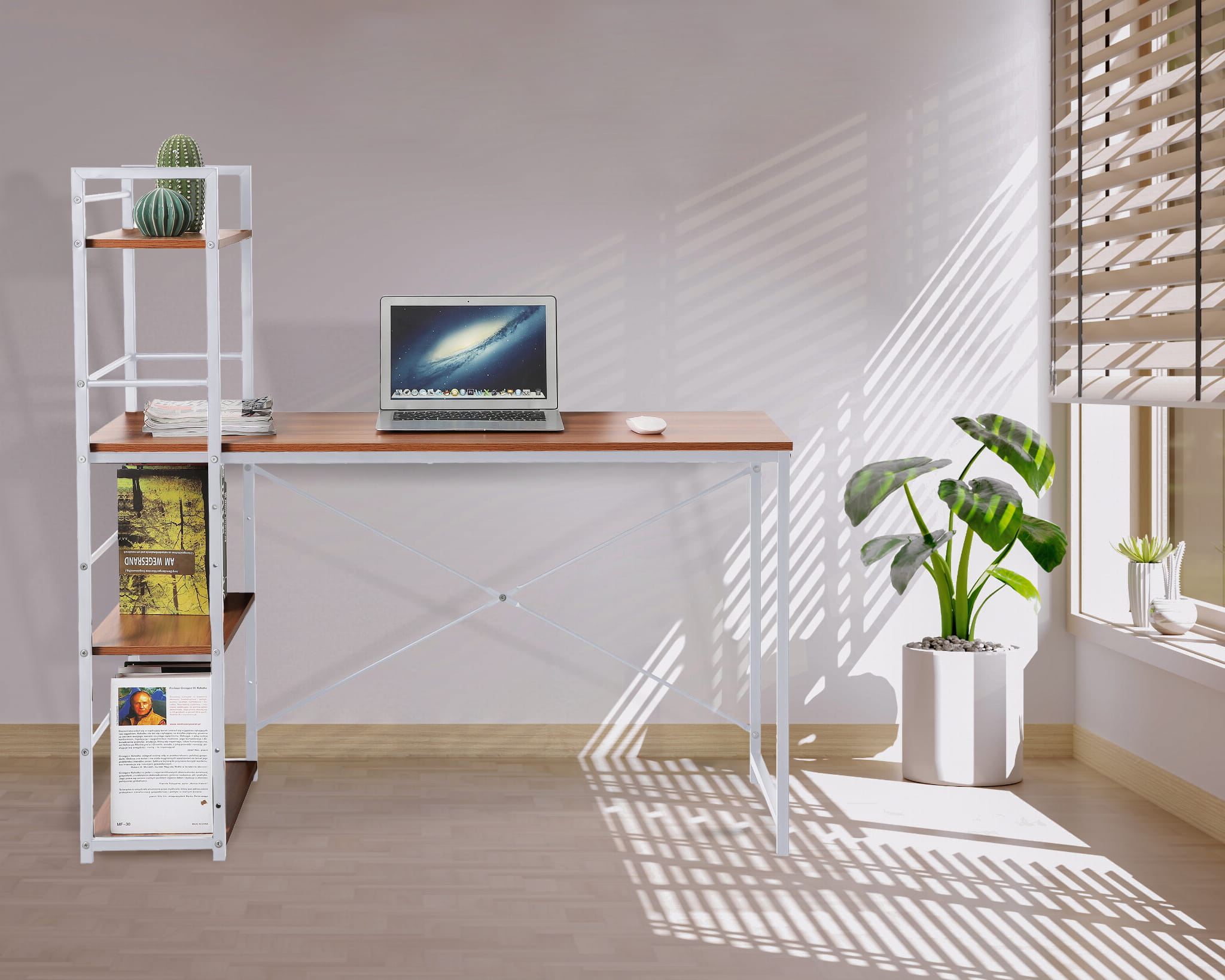 Biurko z regałem – białe, nowoczesne i funkcjonalne