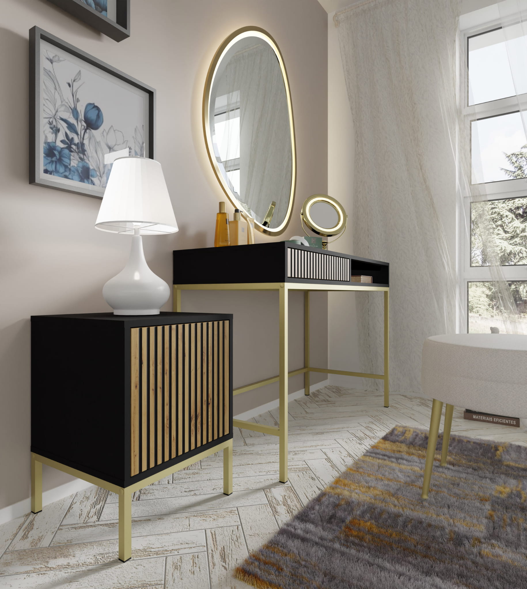 Toaletka z szufladą, czarne matowe/dąb artisan do sypialni, biurko lub konsola Ravenna