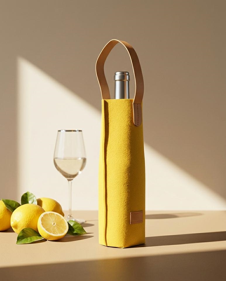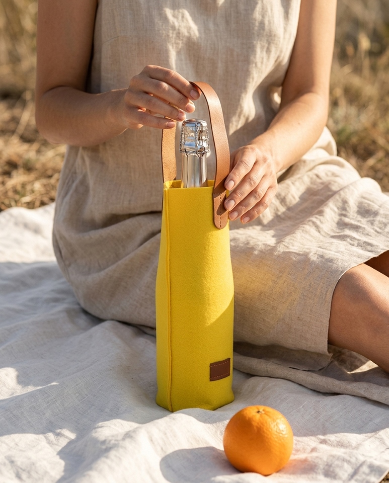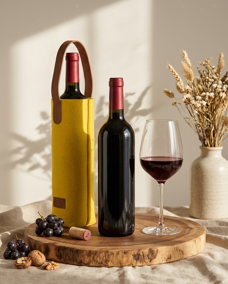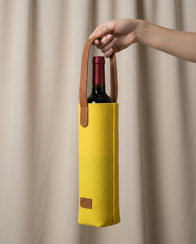 - Miękki filc – elegancki materiał, który poprawia wygląd prezentu i chroni butelkę podczas przenoszenia