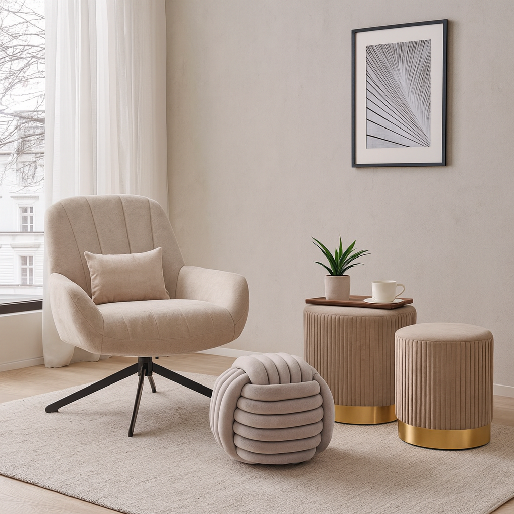 - Tapicerka: tkanina Maloy w kolorze beżowym