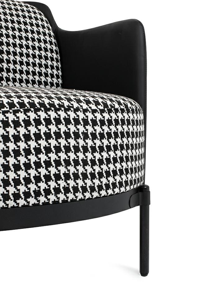 Pełen Klasy Design: Fotel Venice Black emanuje elegancją dzięki ponadczasowemu wzorowi w pepitkę, który nadaje mu wyjątkowego charakteru.