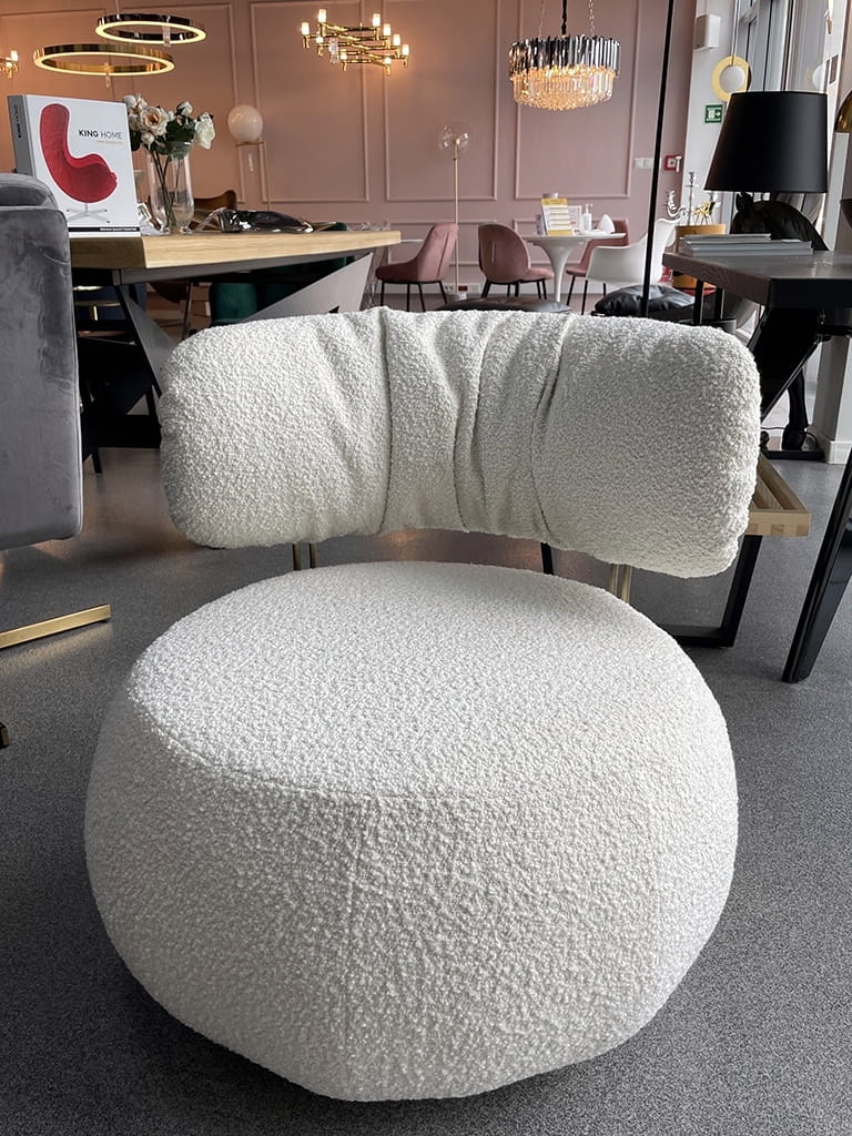 Fotel biały niski w tkaninie Teddy Low do lobby hotelowego