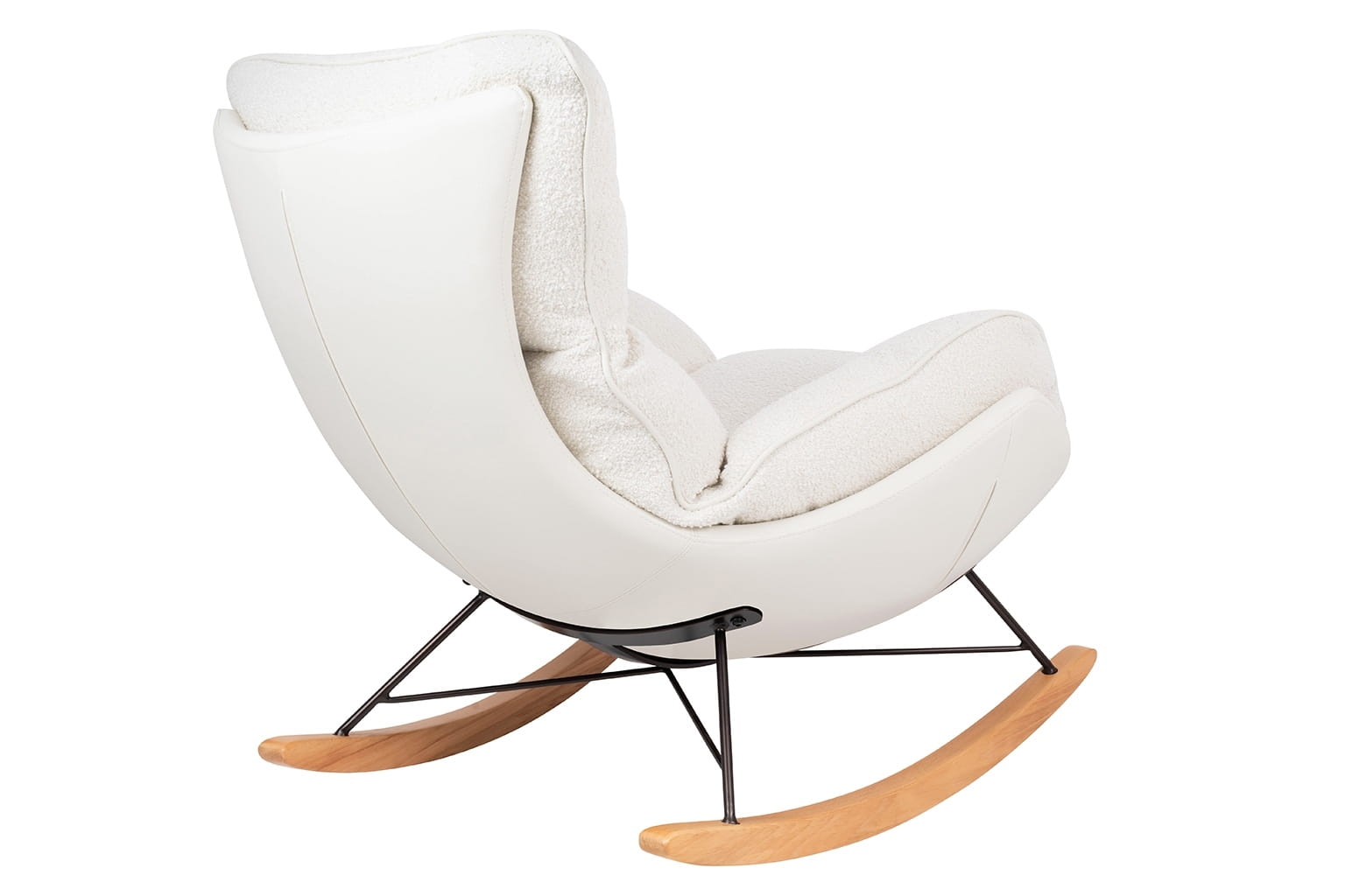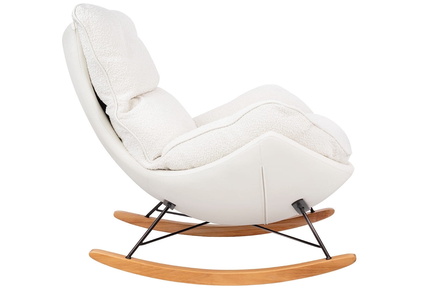 Fotel bujany biały, na drewnianych płozach Otilia Teddy to funkcjonalny i estetyczny wybór, który sprawdzi się w różnych wnętrzach. Wyróżnia się solidnym wykonaniem i ponadczasowym charakterem. Będzie idealnym dodatkiem do Twojej przestrzeni.