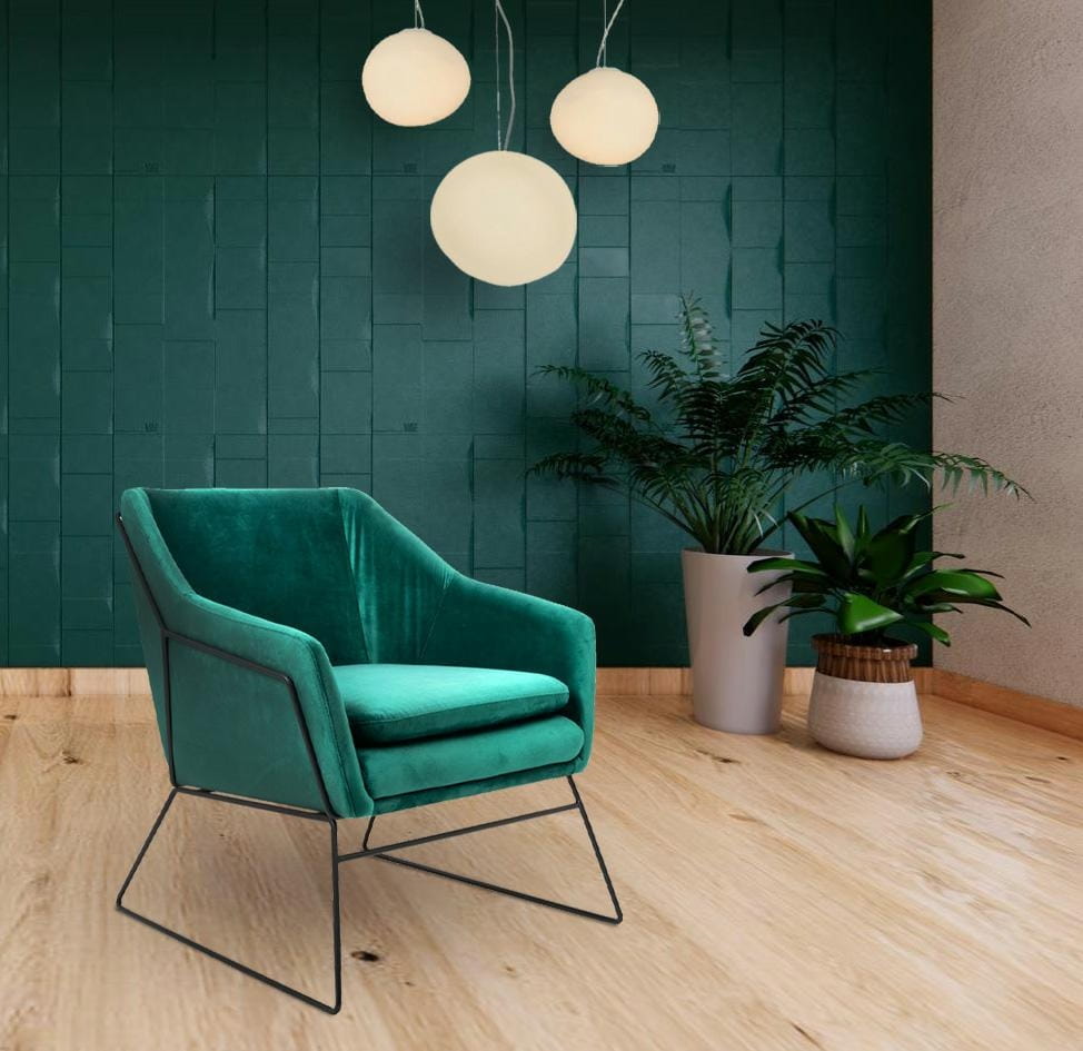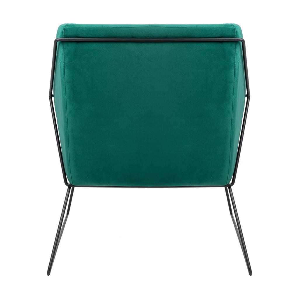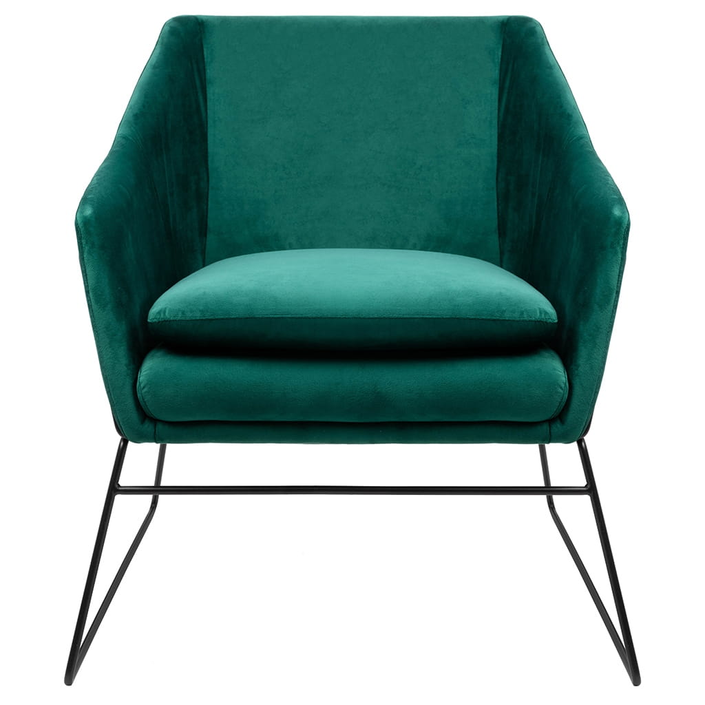 Elegancja weluru: Ciemnozielony welur nadaje fotelowi EMMA luksusowy wygląd.