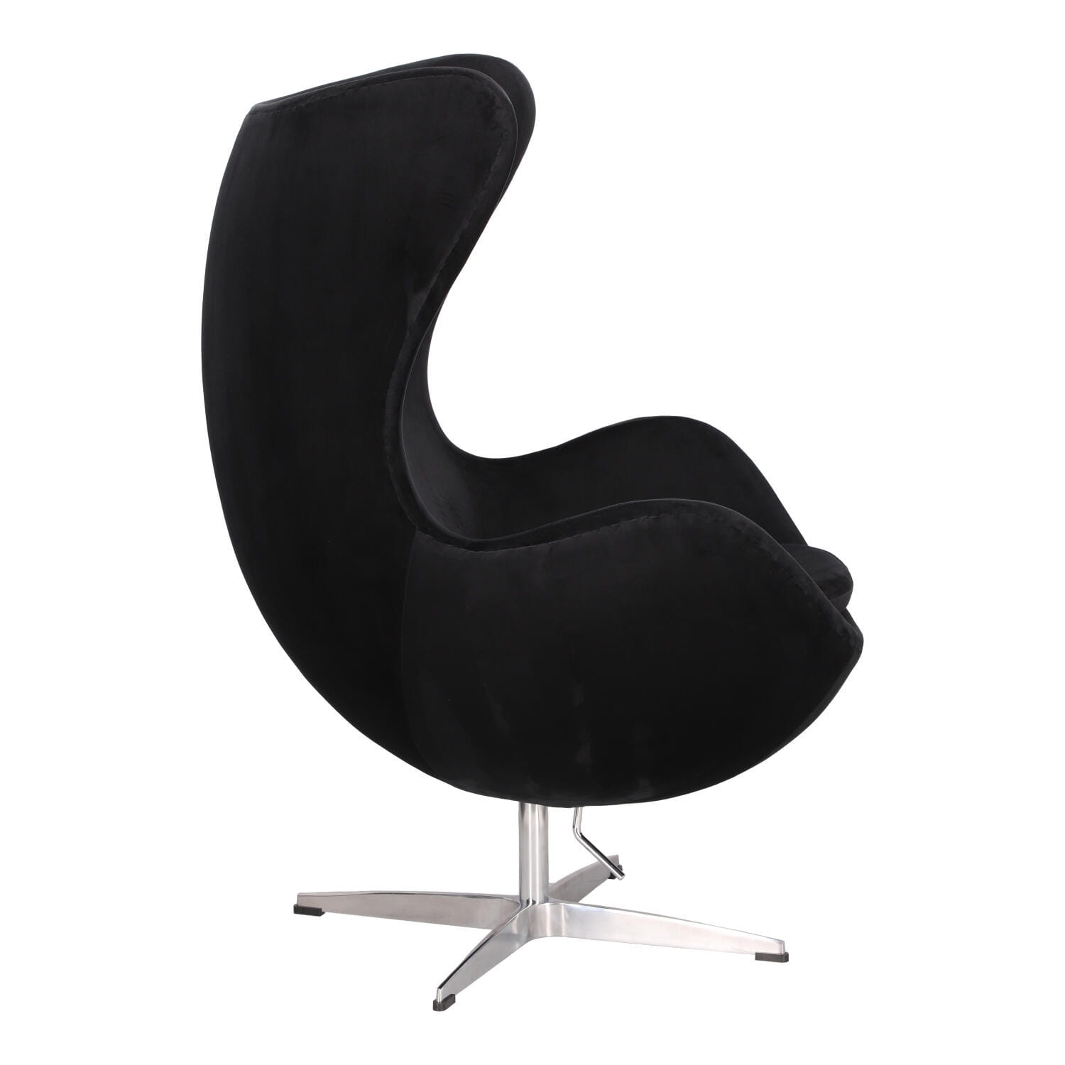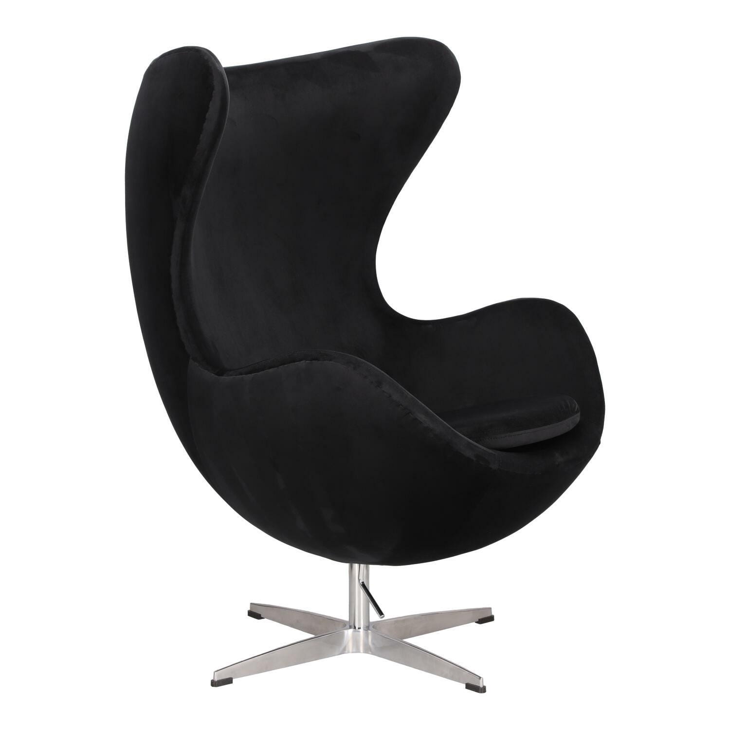Fotel czarny kubełkowy z srebrną podstawą, Jajo Velvet