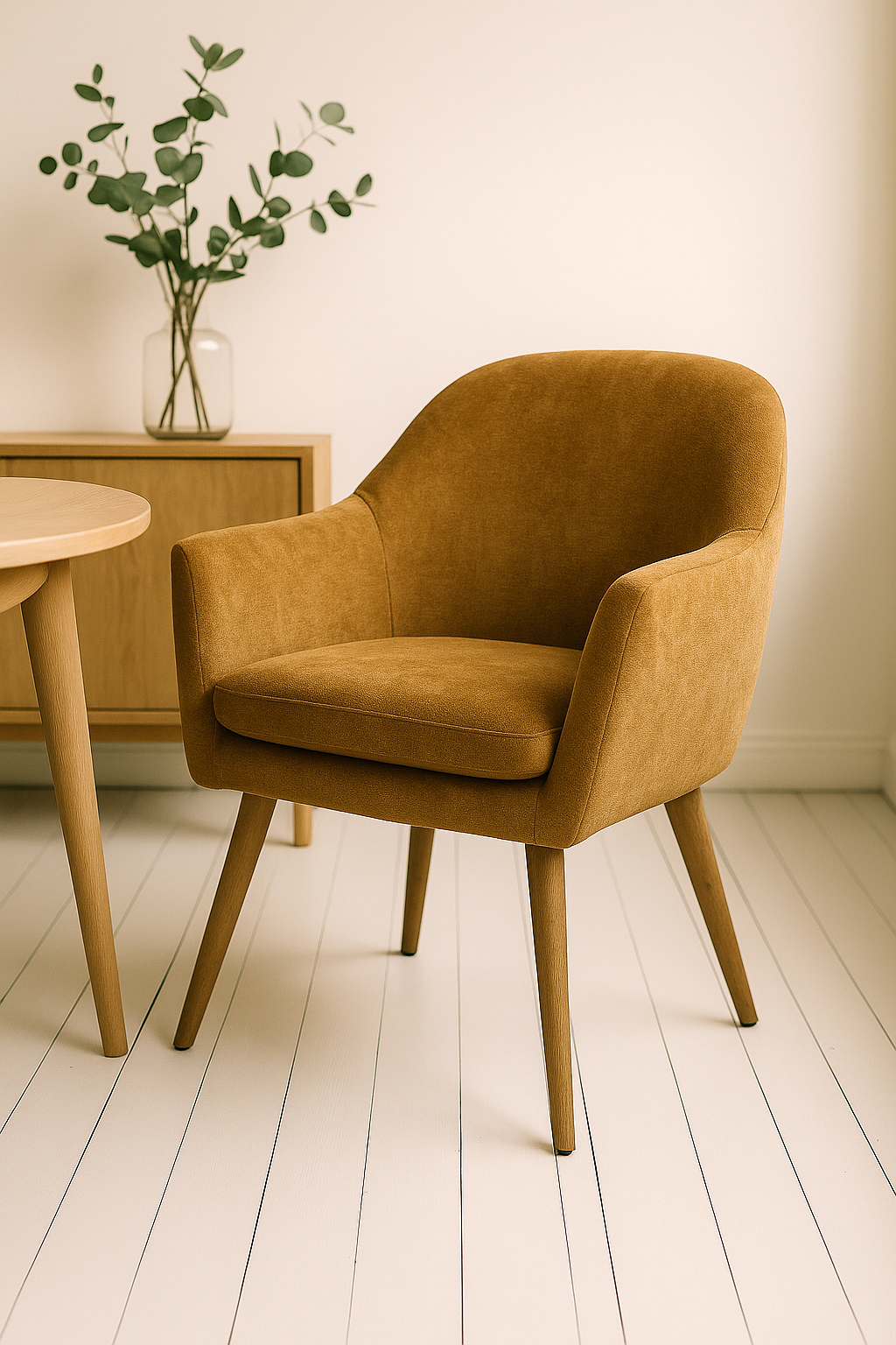 Fotel do sypialni, w stylu skandynawskim Sinel ochra