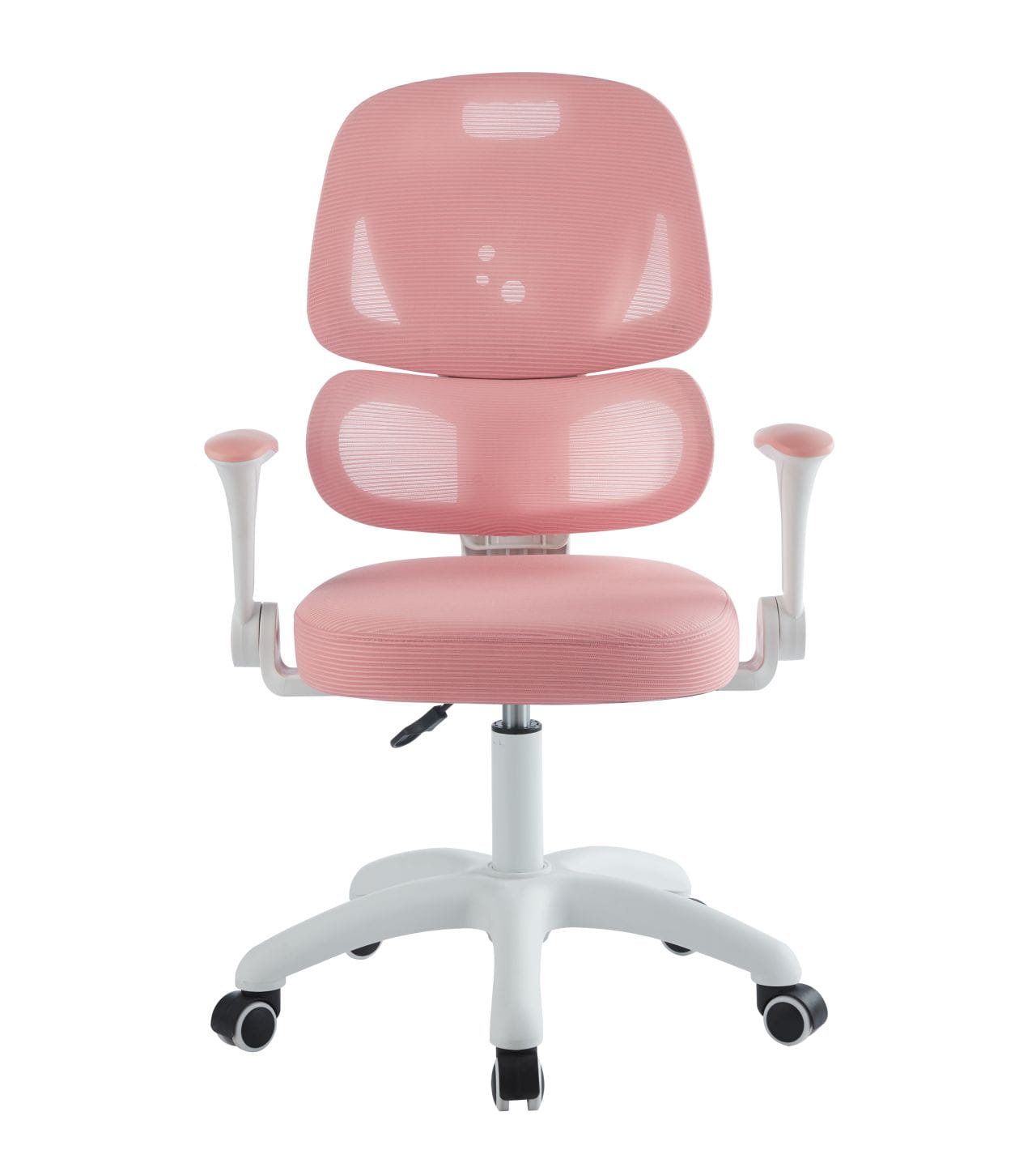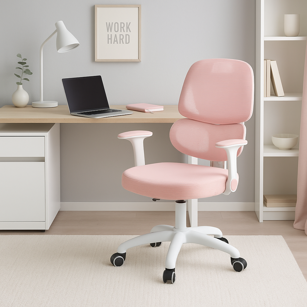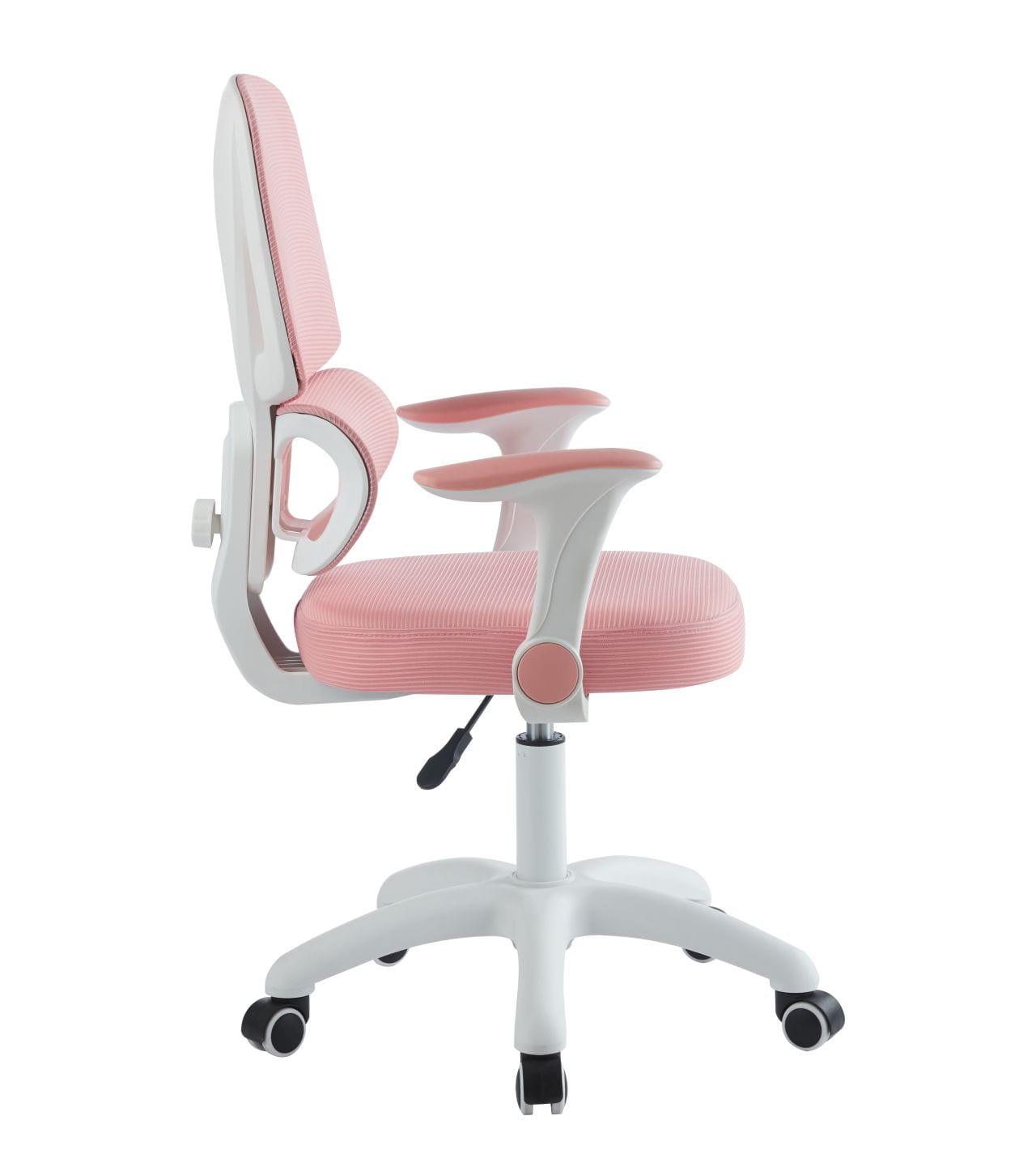 Fotel Malmo to praktyczne i wygodne rozwiązanie stworzone z myślą o młodzieżowych wnętrzach. Różowe siedzisko i oparcie wykonane z tkaniny materiałowej oraz przewiewnej siatki gwarantują komfort nawet podczas długiego użytkowania. Biała podstawa i podłokietniki nadają całości nowoczesnego i lekkiego charakteru.