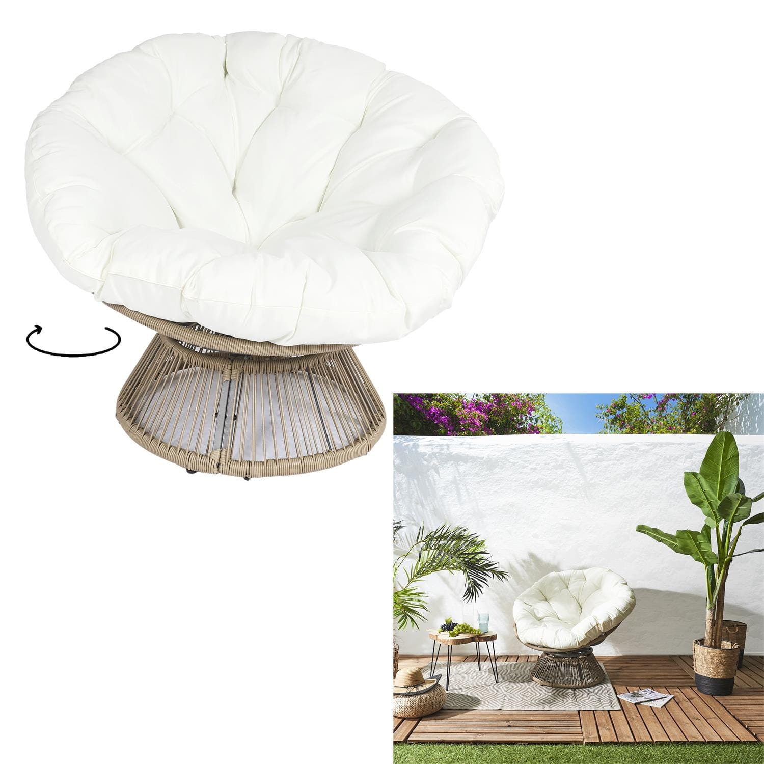 Fotel ogrodowy biały/naturalny, obrotowy Nucan