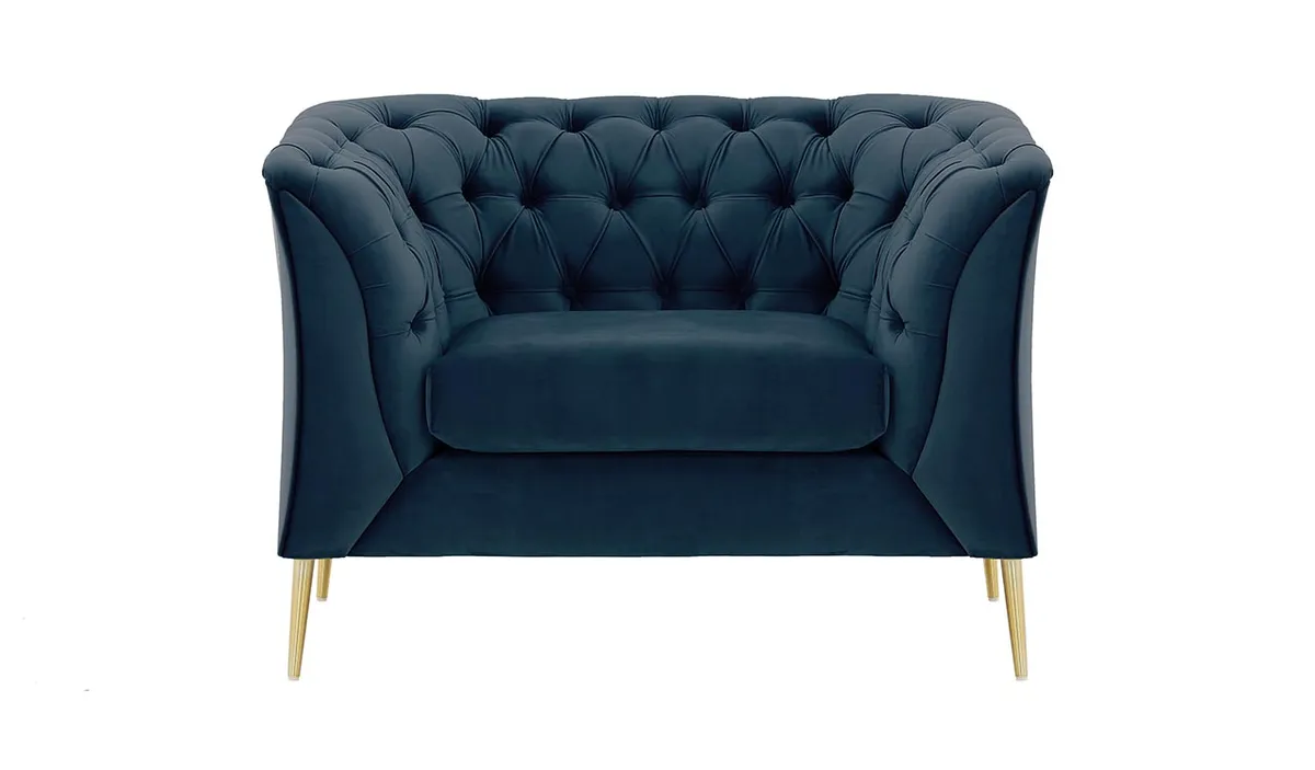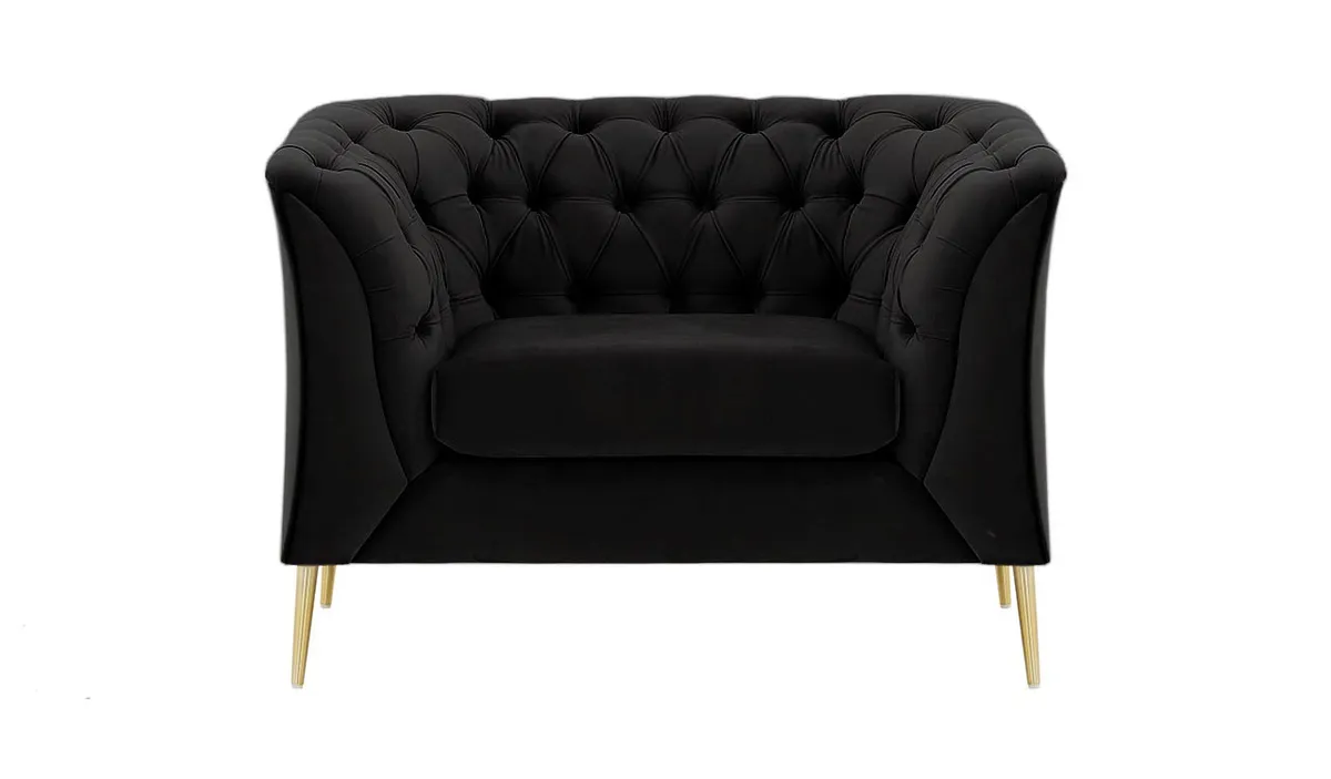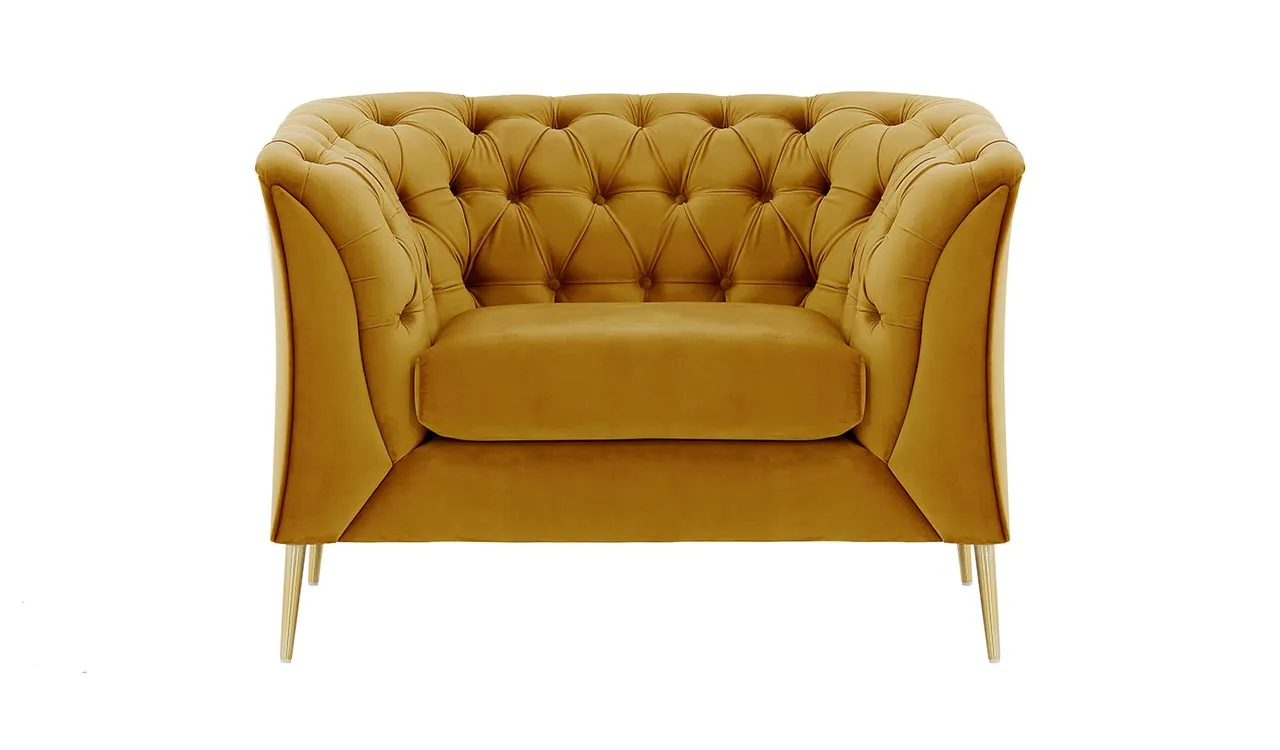 Pikowane oparcie i podłokietniki oraz szerokie podłokietniki nie tylko zapewniają wsparcie, ale także dodają wyrafinowanego charakteru.