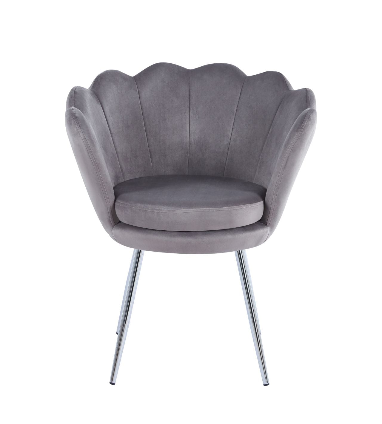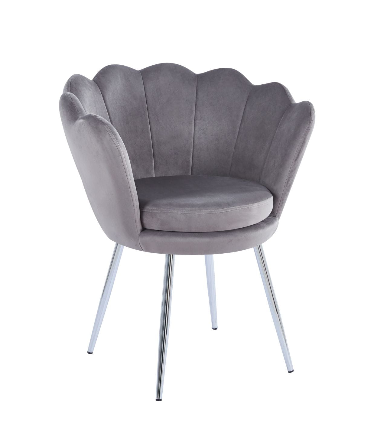 Fotel szary na srebrnych nogach w kształcie muszelki Shell