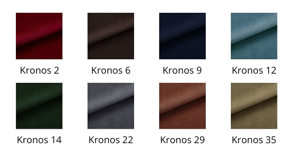 Tkanina Kronos - Kronos to materiał pluszowy, który w swojej strukturze przypomina welur. Delikatny i miły w dotyku. Materiał posiada lekki połysk. Bardzo dobrze prezentuje się na meblach nowoczesnych oraz klasycznych.