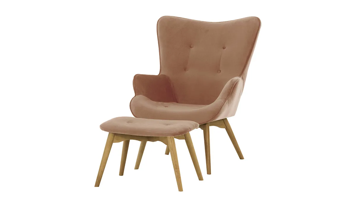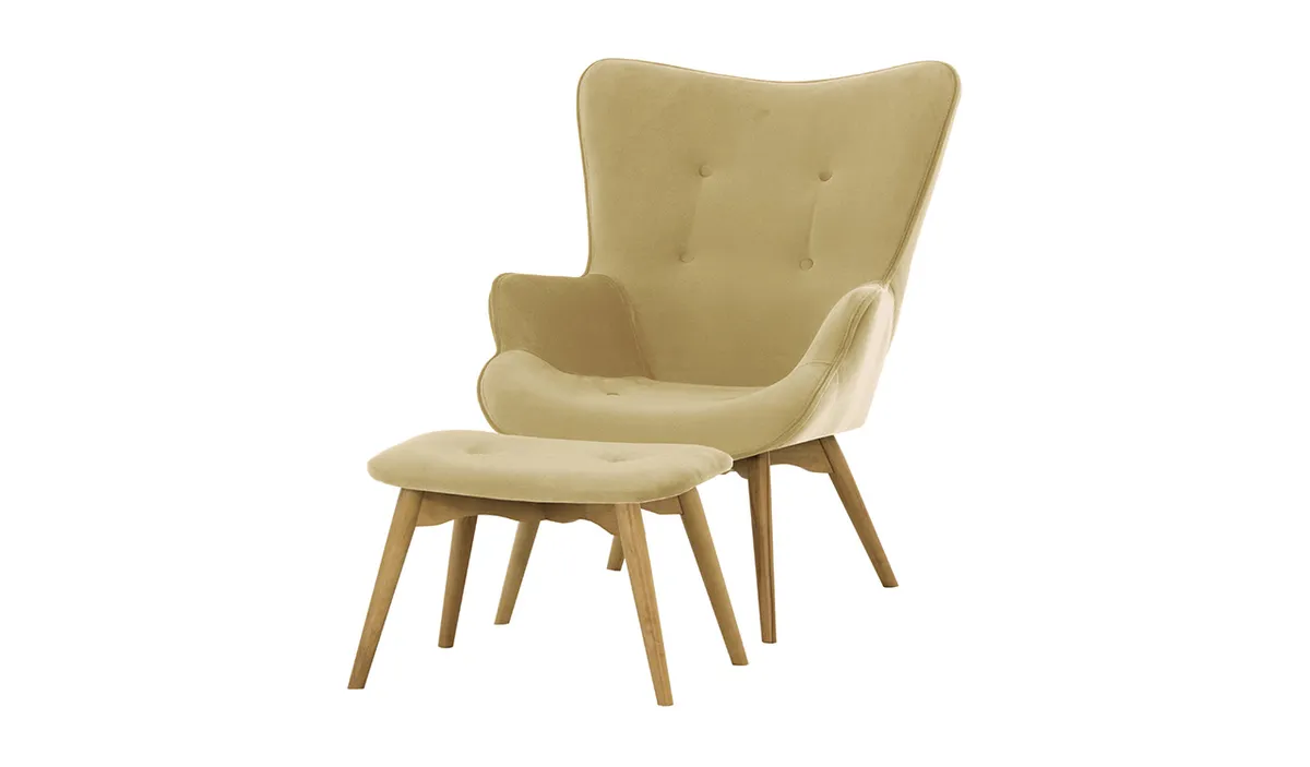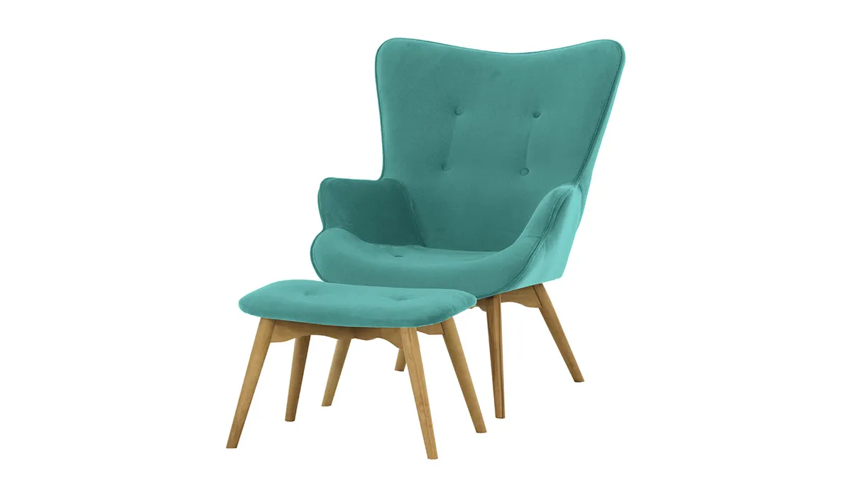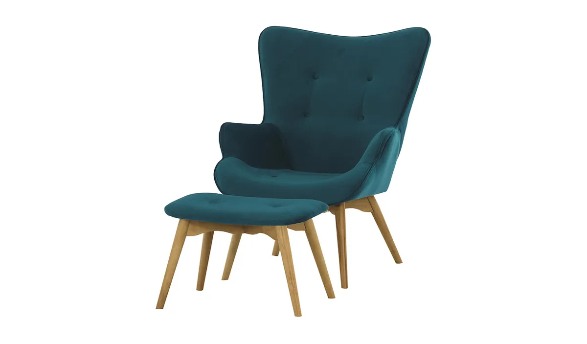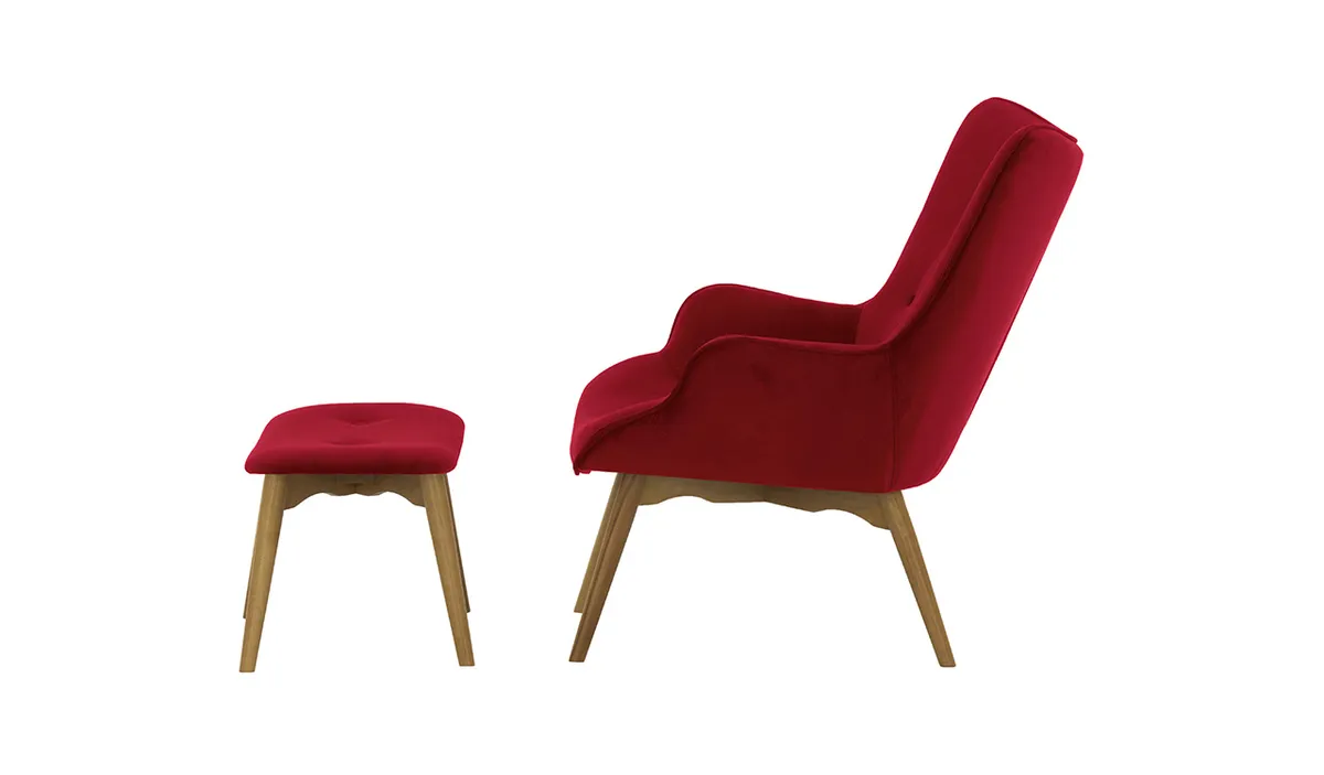 Dla zwiększenia komfortu oparcie jest lekko pochylone, a wygodnym dodatkiem jest podnóżek.