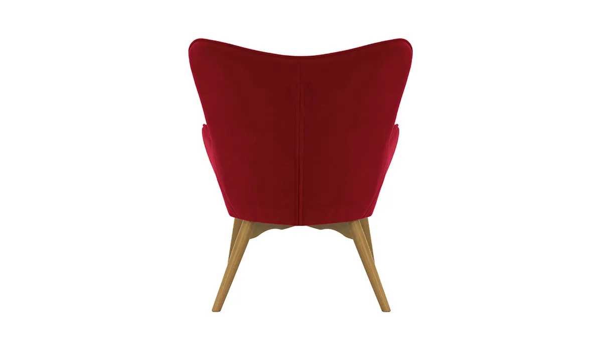 Oparcie i siedzisko fotela zdobią guziki, a jego podstawa wykonana jest w całości z drewna bukowego.