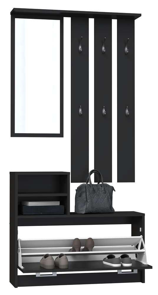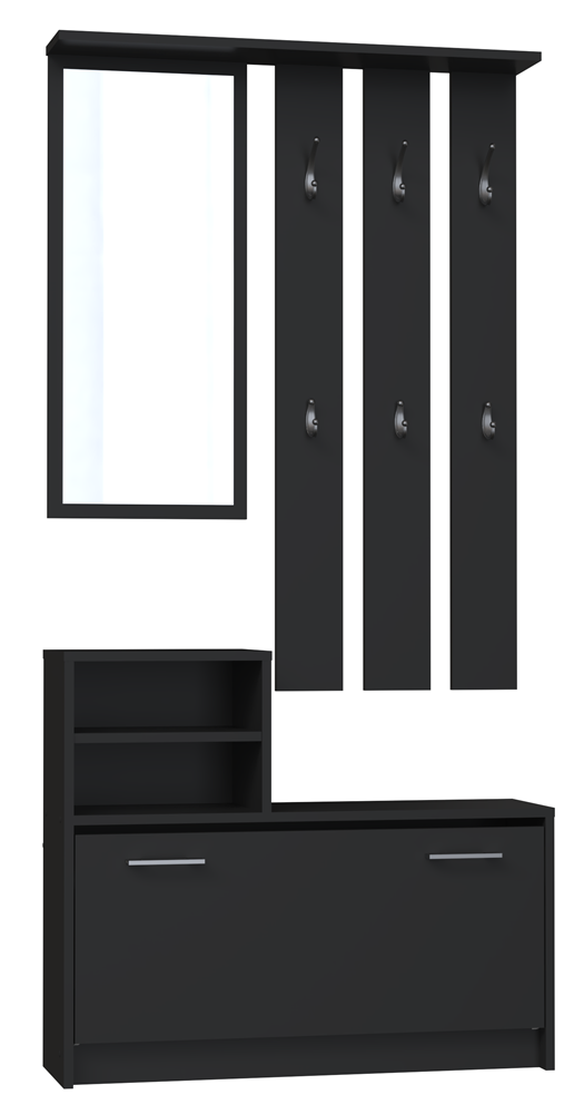 Garderoba czarna, z 6 wieszakami i lustrem Vera do przedpokoju