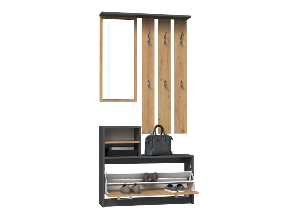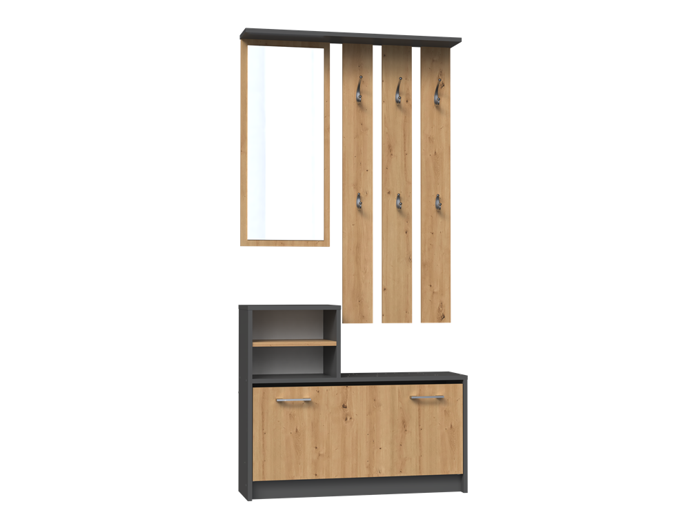 Garderoba dąb artisan/antracyt, z 6 haczykami i lustrem