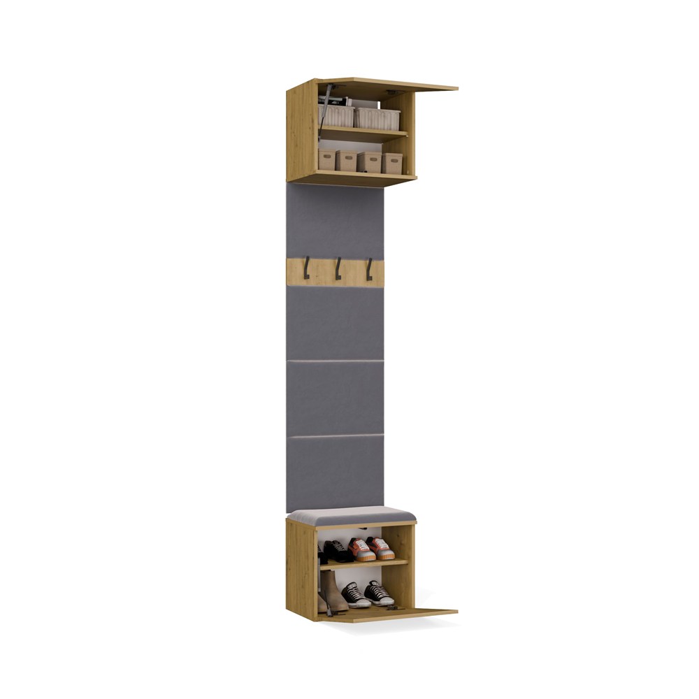 Otwarty panel z wieszakami zapewnia szybki dostęp do kurtek, płaszczy, toreb, plecaków czy akcesoriów, dlatego świetnie sprawdzi się przy intensywnym użytkowaniu każdego dnia.