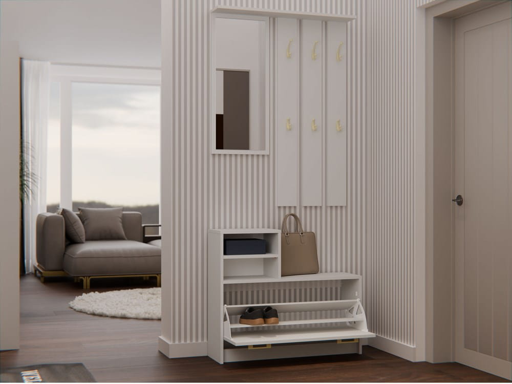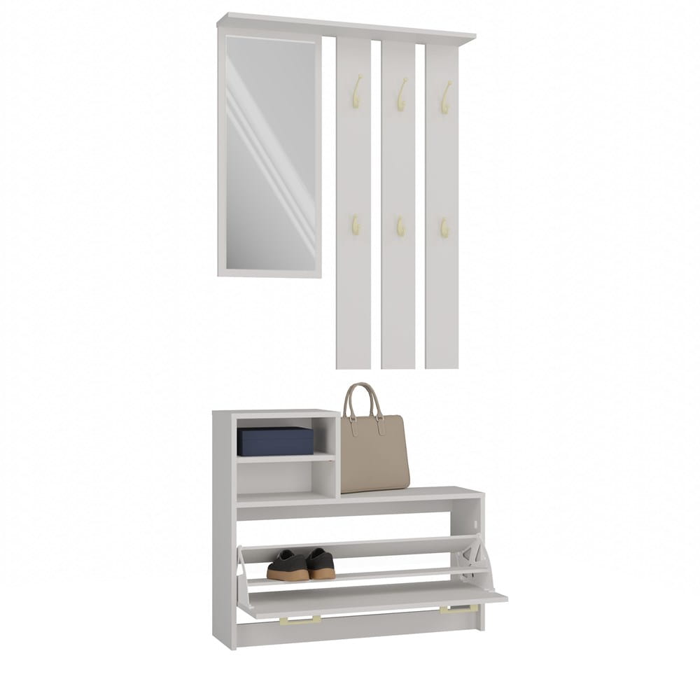 Garderoba z lustrem, szafką na buty i 6 wieszakami, kaszmir Vera do przedpokoju