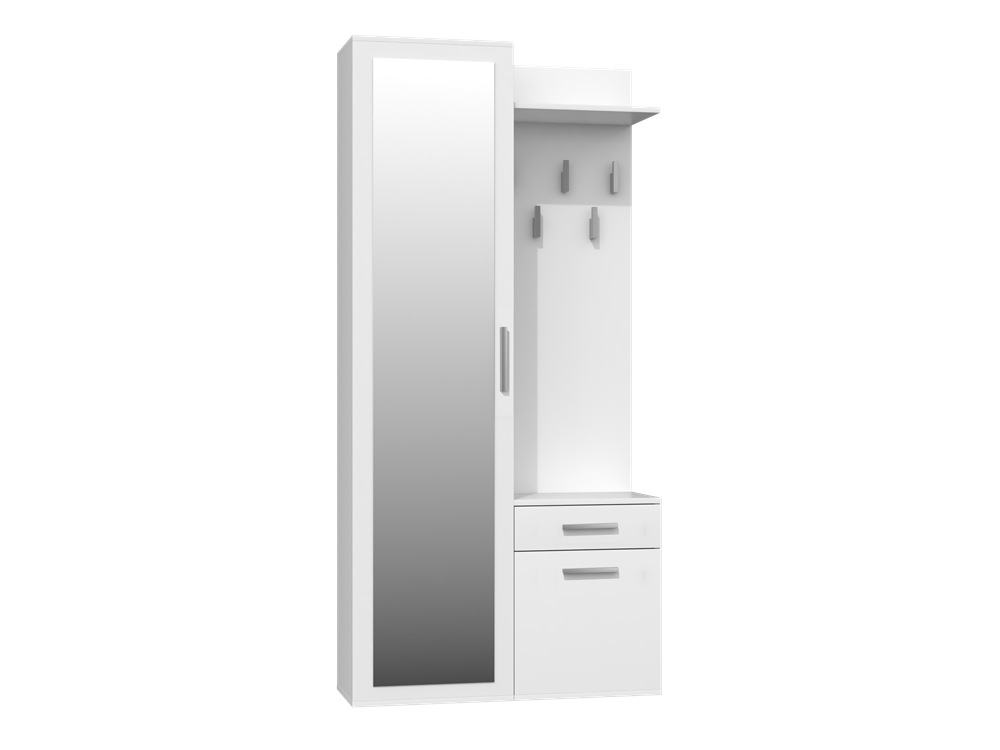 Garderoba z lustrem i 5 wieszakami, biała matowa Duo do przedpokoju.