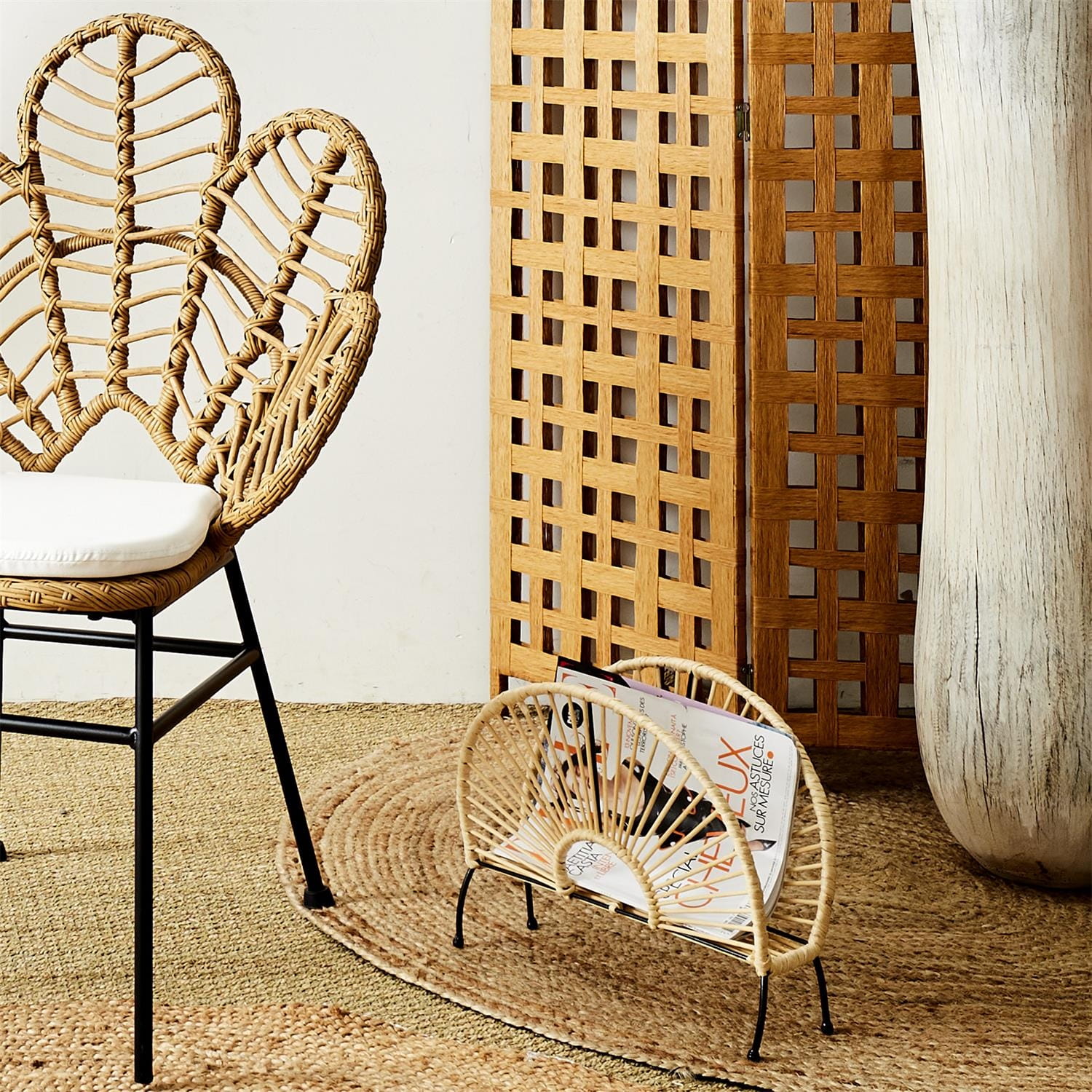 Ułatwia organizację i przechowywanie gazet, czasopism, książek lub innych materiałów drukowanych, jednocześnie stanowiąc stylowy akcent dekoracyjny. Naturalny efekt rattanu nadaje wnętrzu ciepła i subtelnego uroku.