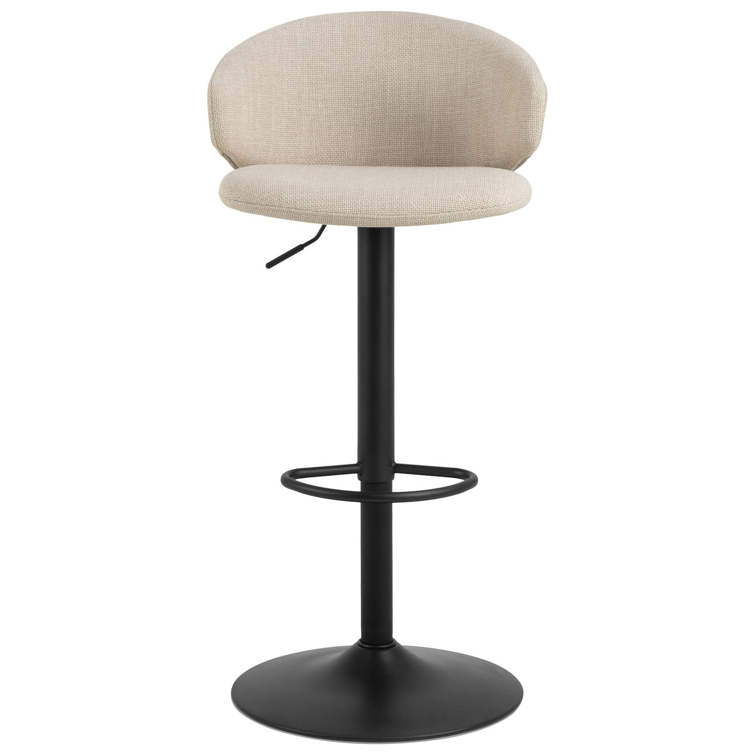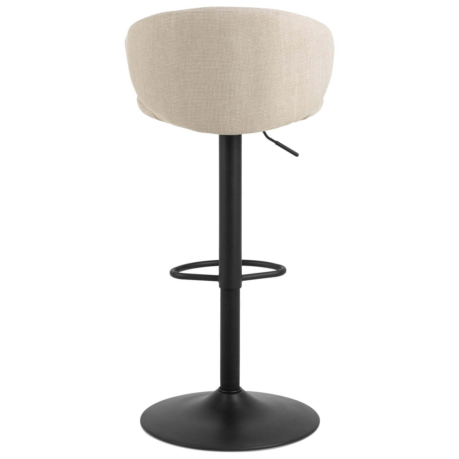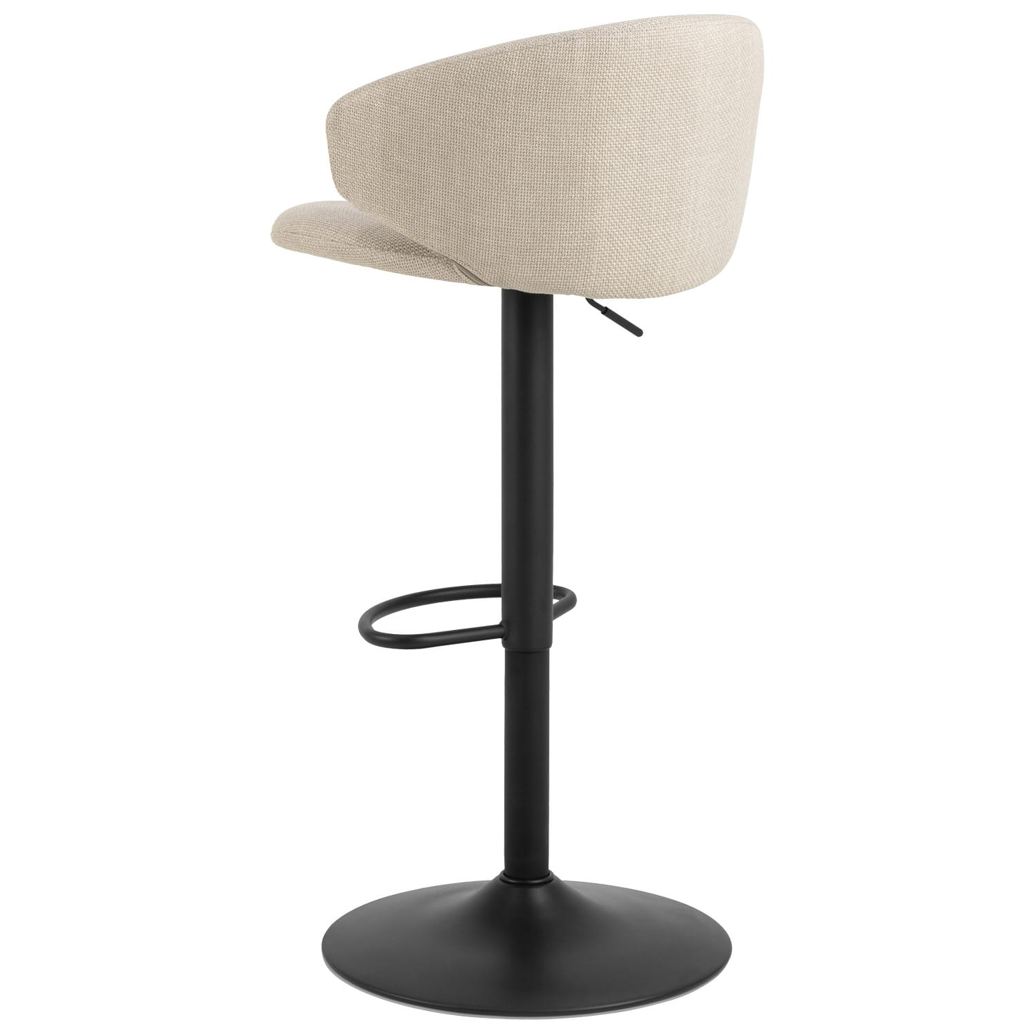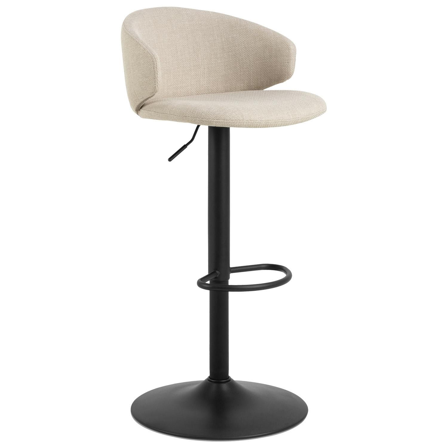 Stołek barowy Ella to nowoczesny mebel zaprojektowany z myślą o komforcie i stylu. Dzięki krótkiemu, zakrzywionemu oparciu oraz wygodnemu siedzisku obitemu beżową, strukturyzowaną tkaniną, zapewnia wyjątkowy komfort siedzenia, a przy tym doskonale prezentuje się w każdej aranżacji.