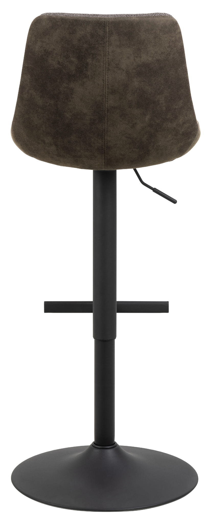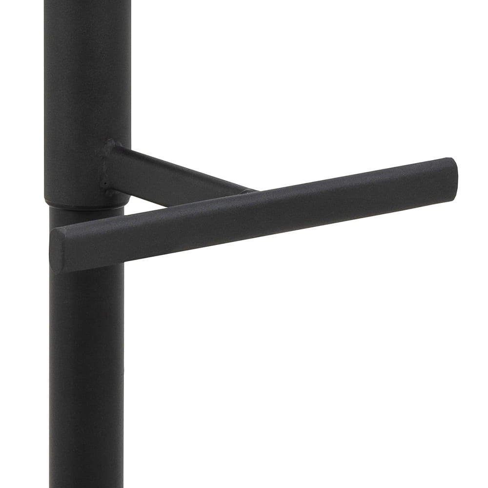 Czarna podstawa w kształcie trąbki z prostym podnóżkiem dodaje nowoczesnego charakteru.