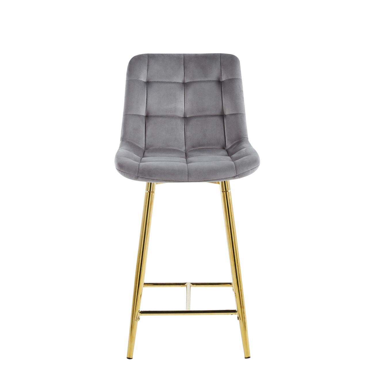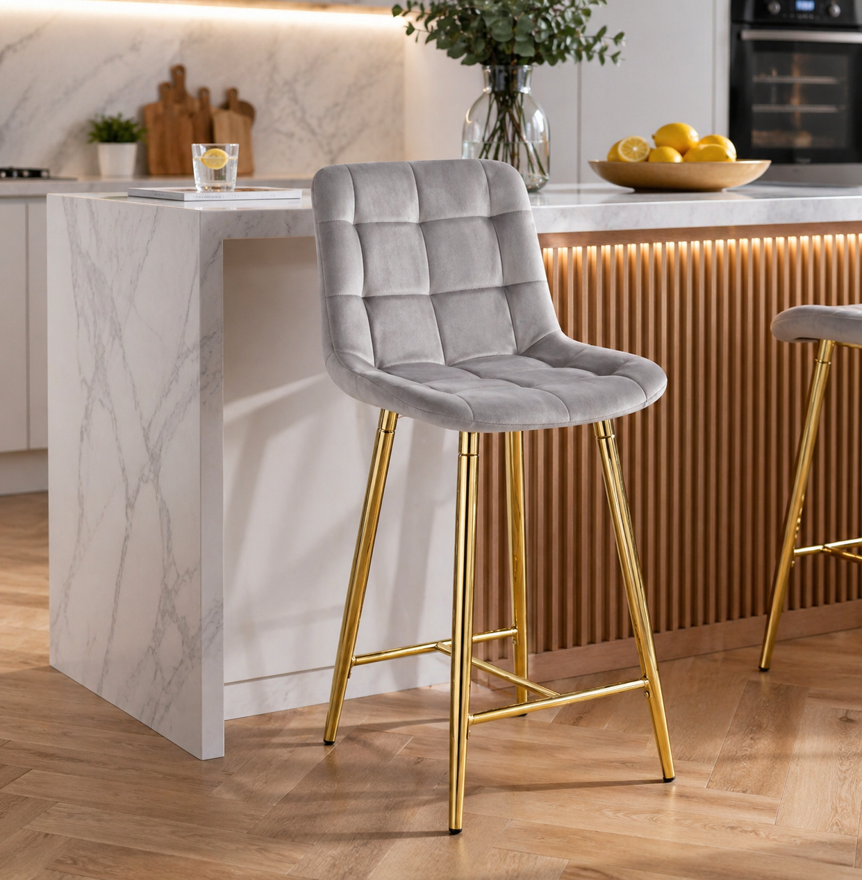 Hoker welurowy ARIA w kolorze szarym to eleganckie krzesło barowe stworzone z myślą o nowoczesnych kuchniach, jadalniach i strefach przy wyspie.
