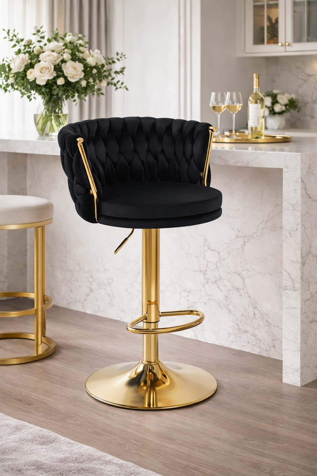 Elegancka forma, dekoracyjne plecione oparcie i złota podstawa sprawiają, że model ten doskonale wpisuje się w modne wnętrza glamour, modern classic oraz contemporary.