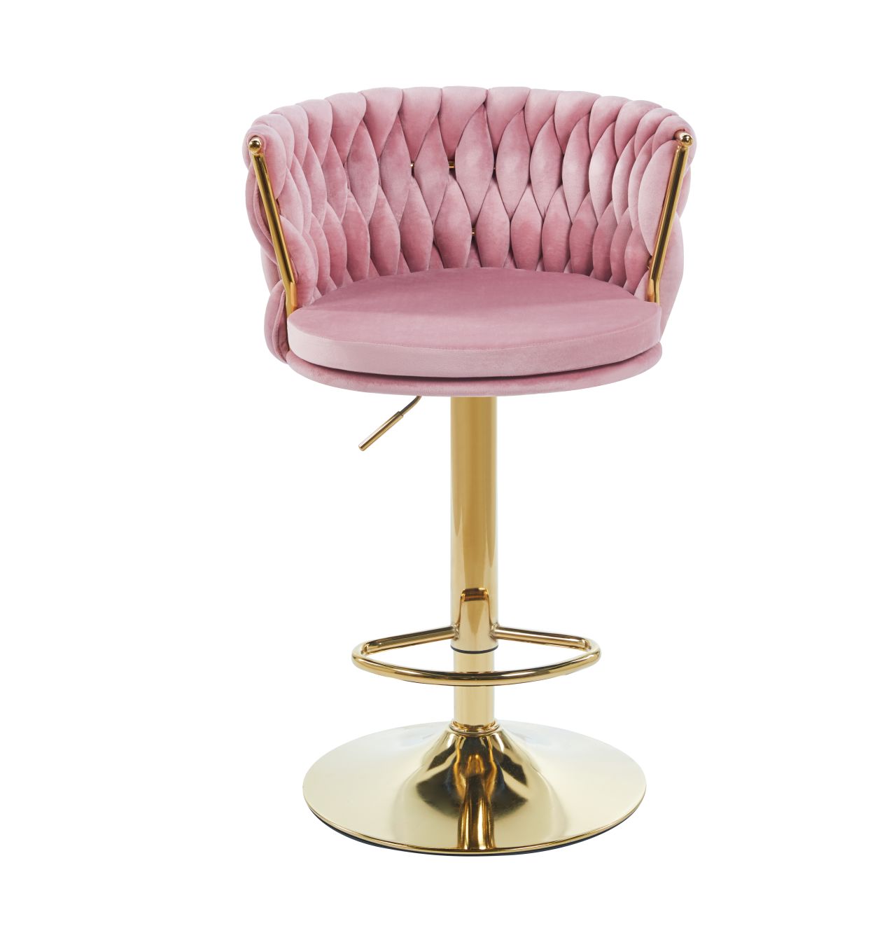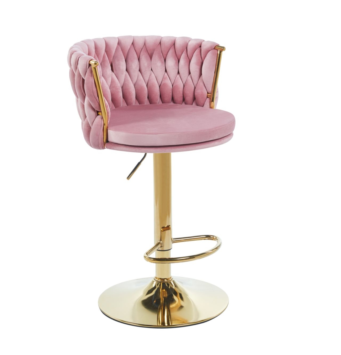 Hoker z oparciem plecionym różowy, na złotej podstawie Rosse