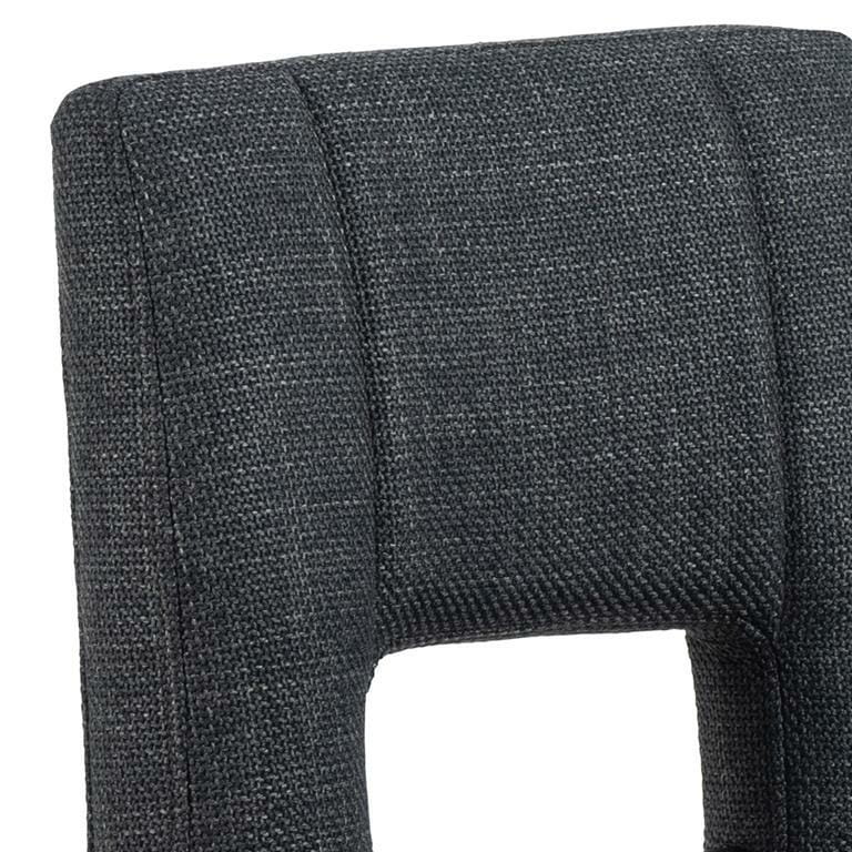 Tapicerowane siedzisko w kształcie litery L, wykonane z strukturanej ciemnoszarej tkaniny, zapewnia nie tylko wygodę, ale także elegancki wygląd.