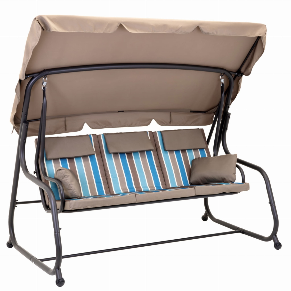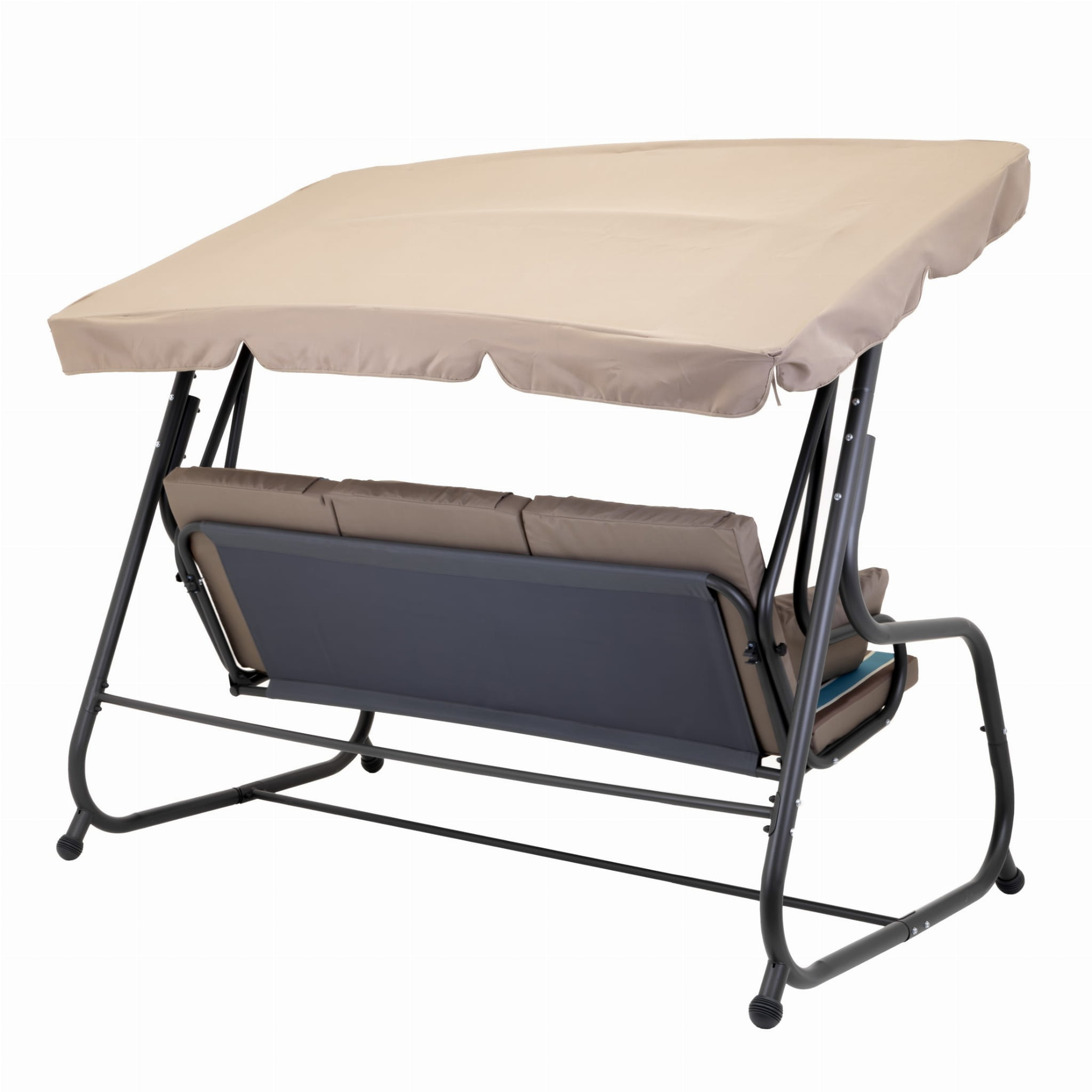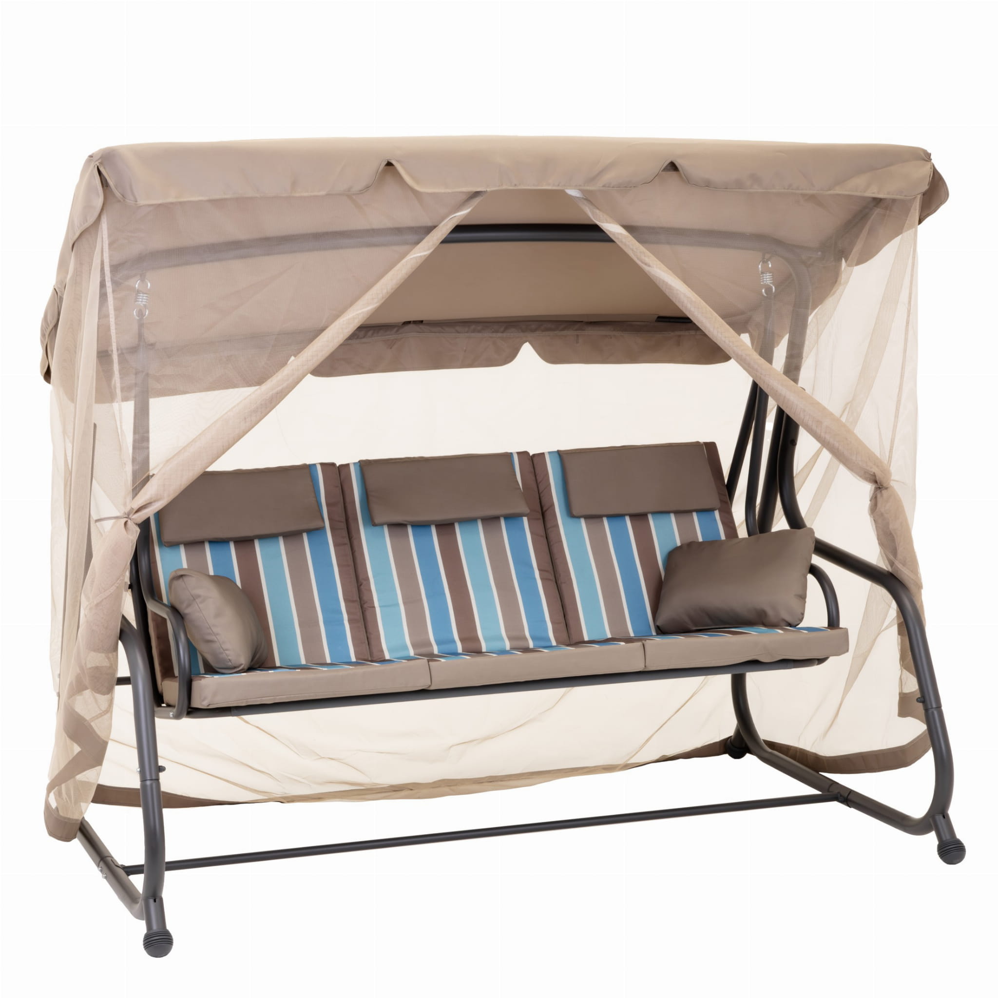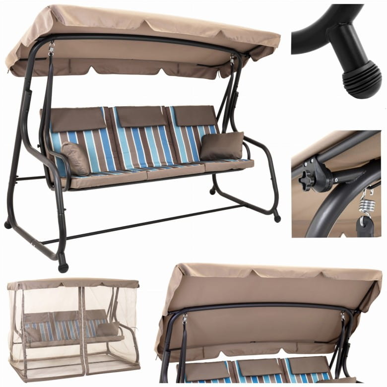 Huśtawka bujana ogrodowa 3-osobowa z moskitierą, daszkiem i poduszkami