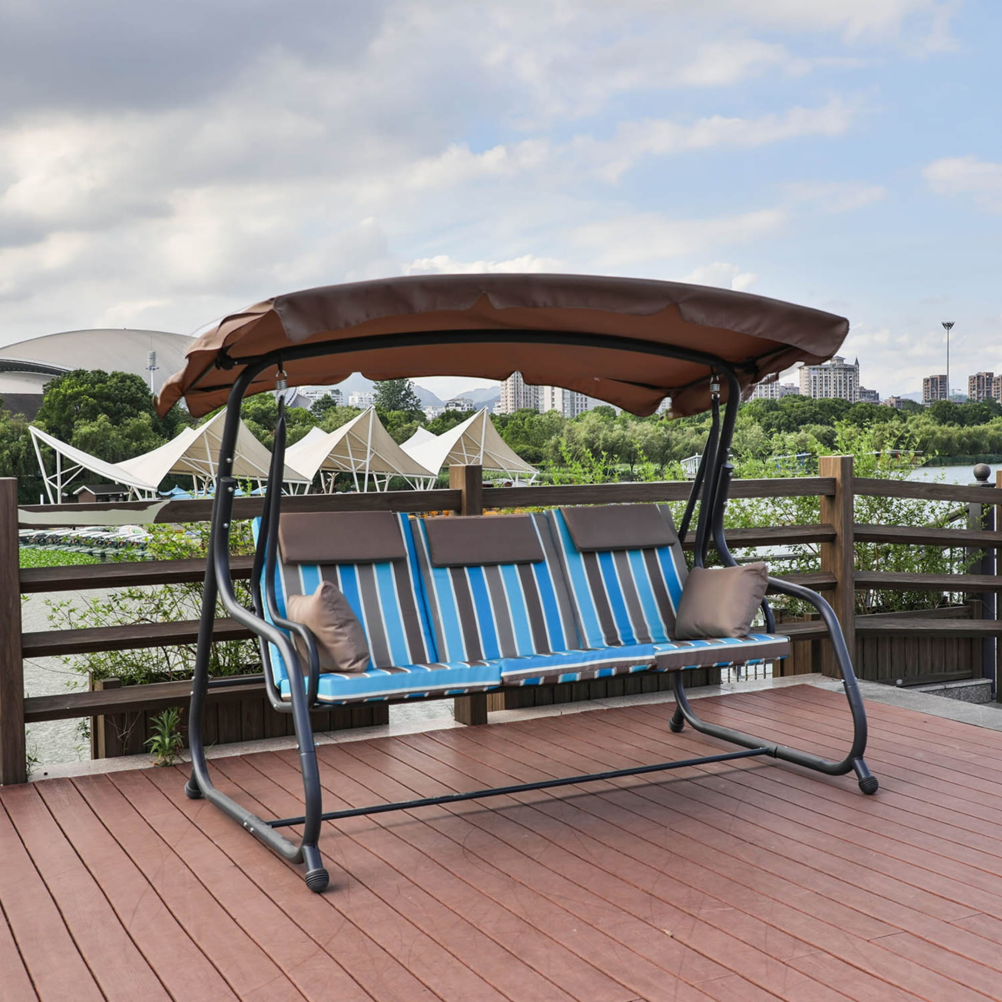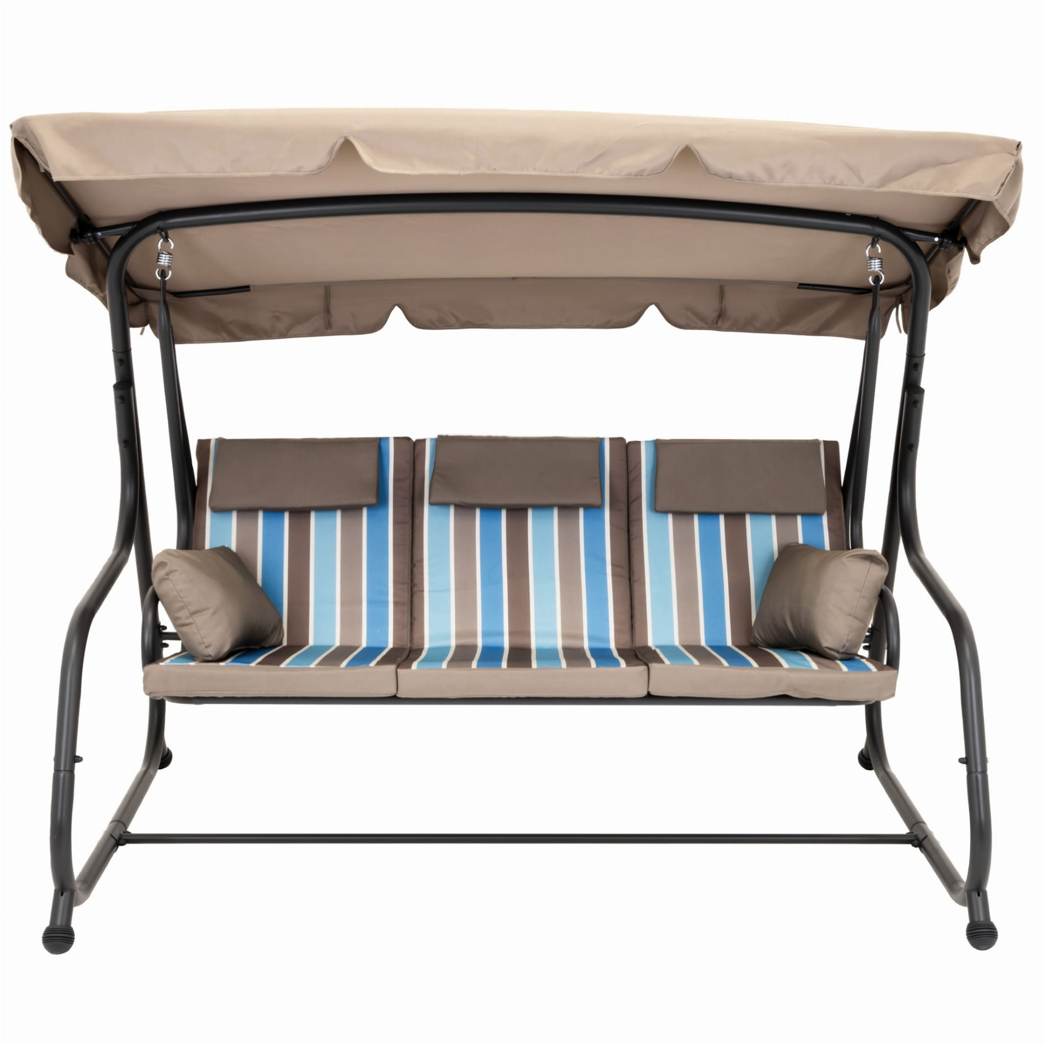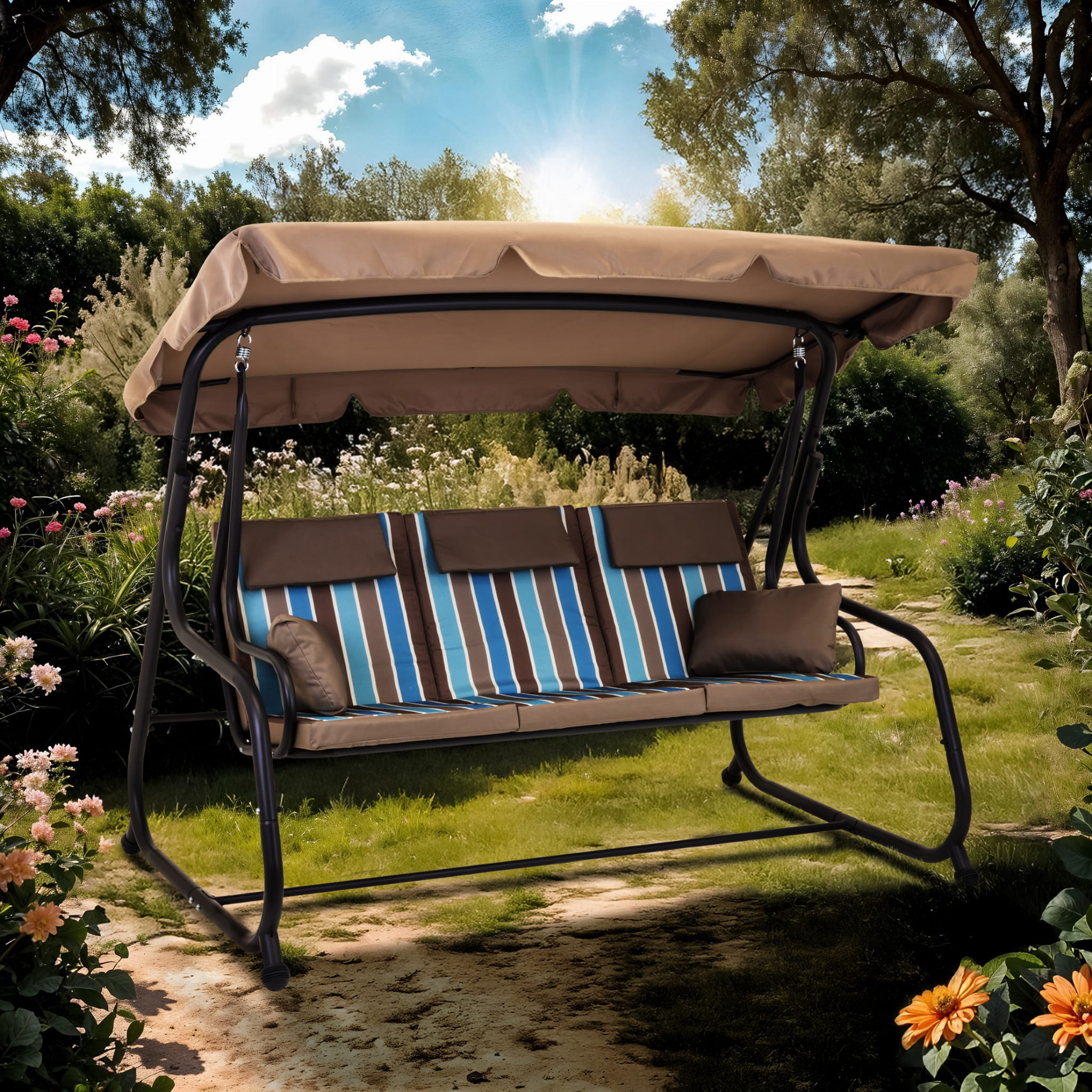 Huśtawka bujana ogrodowa 3-osobowa z moskitierą, daszkiem i poduszkami